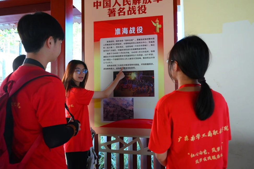 筑梦实践服务队陈晓晴说:“今天的红色主题教育长廊参观学习让我感触很深,让我对党的历史有了更加深刻的认识,我要更加珍惜现在来之不易的美好生活。”