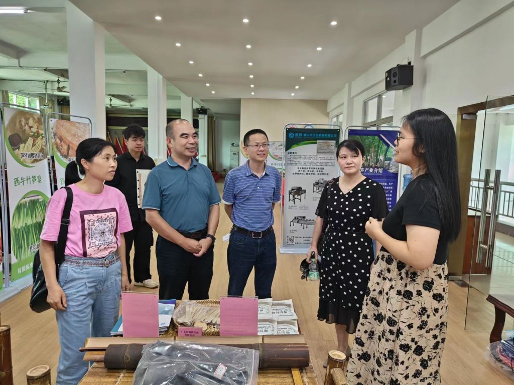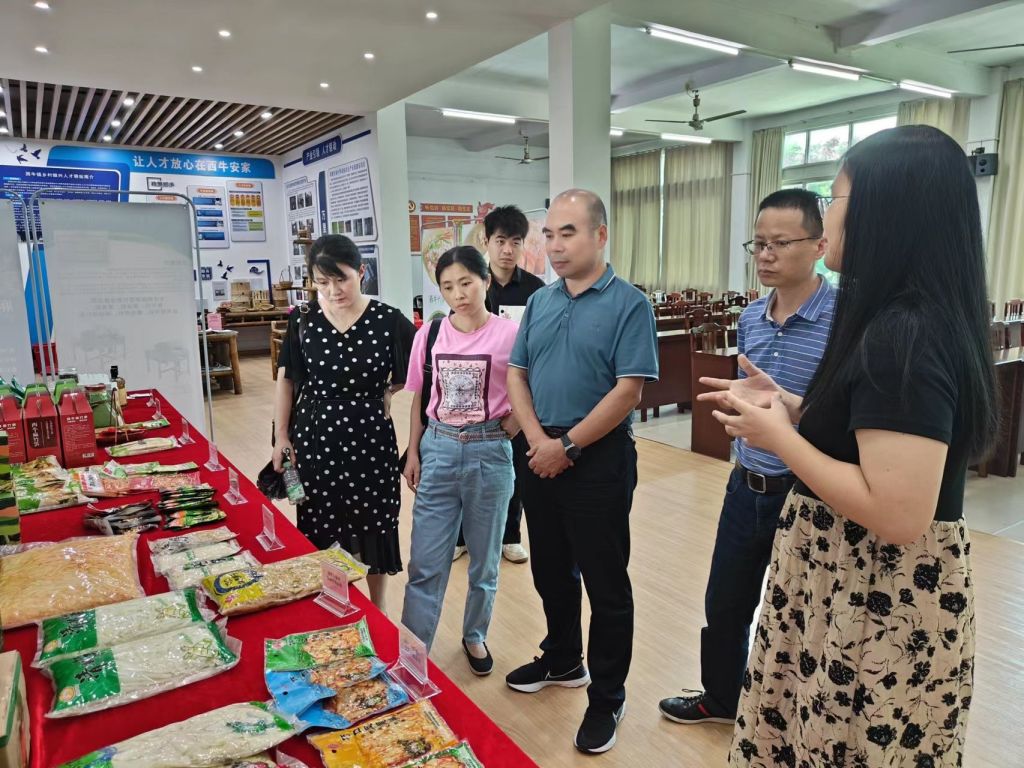 交流会结束后,汤镇长带领我们一同前往办公楼二楼农产品展览厅,参观麻竹笋的加工品的情况,深入了解麻竹笋的其他加工品的品种以及特色。这进一步让我们加深对当地的特色农产品麻竹笋的了解和认识,有利于我们在“三下乡”社会实践活动开展更有针对性的服务项目。
