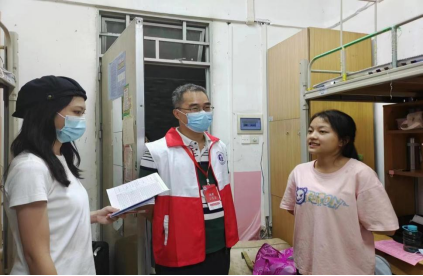 学院领导、老师走访每一间新生宿舍,亲切地询问新生来到学校的感觉以及到校的适应情况,了解他们的实际诉求,并提出解决问题的方案,此外,老师们叮嘱同学们在疫情期间对防疫工作不能有一丝松懈,出门戴好口罩,课余时间多走出宿舍锻炼身体,积极参加体育活动,并提醒同学们养成勤洗手、勤消毒,养成良好的卫生习惯,饭堂就餐保持适当距离,做到不扎堆,做好个人防护。