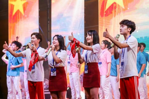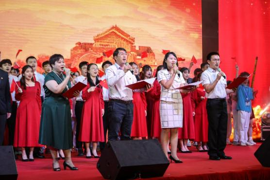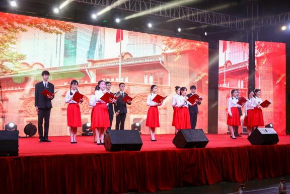 在颁奖的过程中,穿插进行才艺大赛的《唱支山歌给党听》合唱、《我要入党》小品表演、《永远跟党走和今天我们这样爱国》诗朗诵、《我和我的祖国》歌舞表演、《赞赞新时代》歌唱表演、《乌龙快递》小品表演、《致敬“最美逆行者”》T台走秀、《不忘初心》歌唱表演、师生合唱——《歌唱祖国》等节目,为老师和同学们带来了精彩的视觉盛宴。其中,《致敬“最美逆行者”》T台走秀用生动的体态语言形象诠释了抗疫“战士”们奋不顾身、冲锋一线、无私奉献的大无畏精神,生动渲染了我们身边看得见、摸得着、在身边的先进典型,激励了广大师生要时刻以先进典型为榜样,以实际行动践行初心使命,继续坚守责任担当,用实际行动为党、为国家、为人民做出更大贡献。