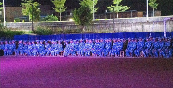 到了当天晚上,是军训期间最为轻松的一晚。整个营队欢聚一堂,共同拉歌,嘹亮悦耳的军歌充斥着整个操场,回音环绕。欢快的回忆总是那么让人印象深刻的,希望新兵们能够好好记住这愉快的一晚。