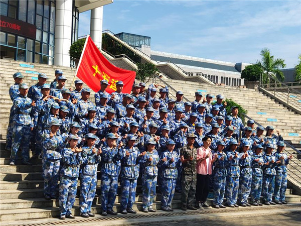 军训是苦的但收获是甜的,军训不仅增强了同学们的体能,学到许多知识和技能,而且增强了爱党、爱国、爱军的意识,强化了国防观念和报效祖国的责任感,培养了集体主义的思想和艰苦奋斗、吃苦耐劳、团结友爱的精神。短短的两周时光会给这一群年轻人留下那深于海、挥之不去的烙印,必将在每一个充满青春活力的生命中绽放出光彩。