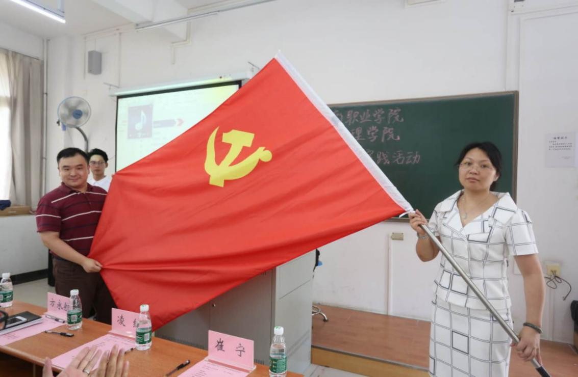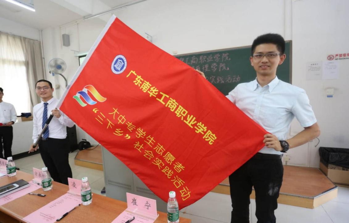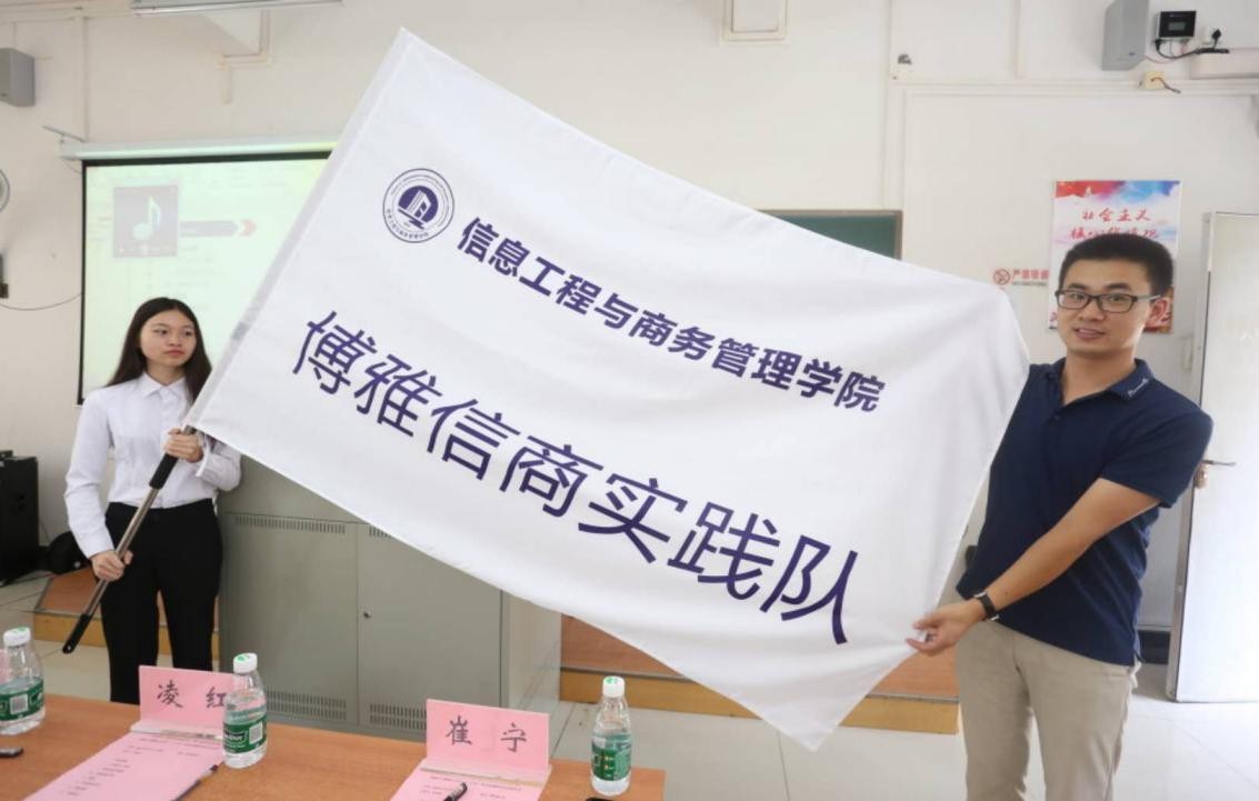 紧接着进行授旗仪式,首先请信息工程与商务管理学院党总支副书记凌红上台授“党旗”,由信息工程与商务管理学院辅导员老师王奕老师上台接旗;然后是信息工程与商务管理学院团委书记崔宁上台授“队旗”,由信息工程与商务管理学院团委组织部部长彭玉珊同学上台接旗。最后是校团委副书记方永航老师上台授暑期大学生三下乡社会实践活动活动旗帜,由信息工程与商务管理学院2018年暑期“三下乡”社会实践活动学生代表梁景滔同学上台接旗,授旗完毕。紧接着由党总支副书记凌红老师上台进行总结,凌红老师表示对待本次“三下乡”活动有两点需要注意;1、注意安全,不管是人身安全、财产安全还是交通安全都要十分重视。2、“三下乡”活动是要真正走进社会走进农村,通过活动去触摸到真正的社会状况,发现社会真正的痛点难点在哪里,能去为社会做出一些贡献,这个活动成果并不是要一份调研报告一个数据,而是要学习到在这个实践活动中是为了将来社会变得更好,这也是对于这次队伍中有11个党员的初衷。希望队伍出发前牢记使命和工作任务,克服困难,完成任务,争创佳绩!