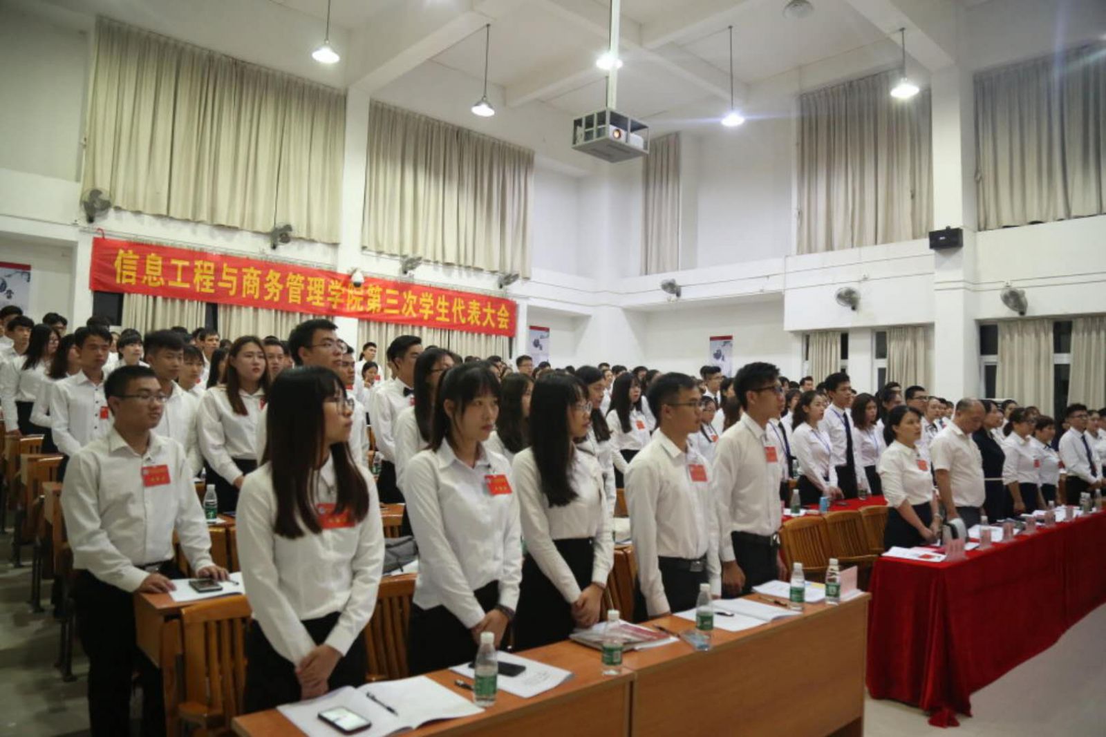 本次大会分为预备会议和正式会议,预备会议由信商学院学生会主席郑海杰同学作大会筹备工作报告,他分别从组织领导及发动工作、工作报告的起草等四个方面报告;其次由龙俏颖老师宣读第三次学生代表大会代表资格审查报告,报告并在大会上通过了审议。