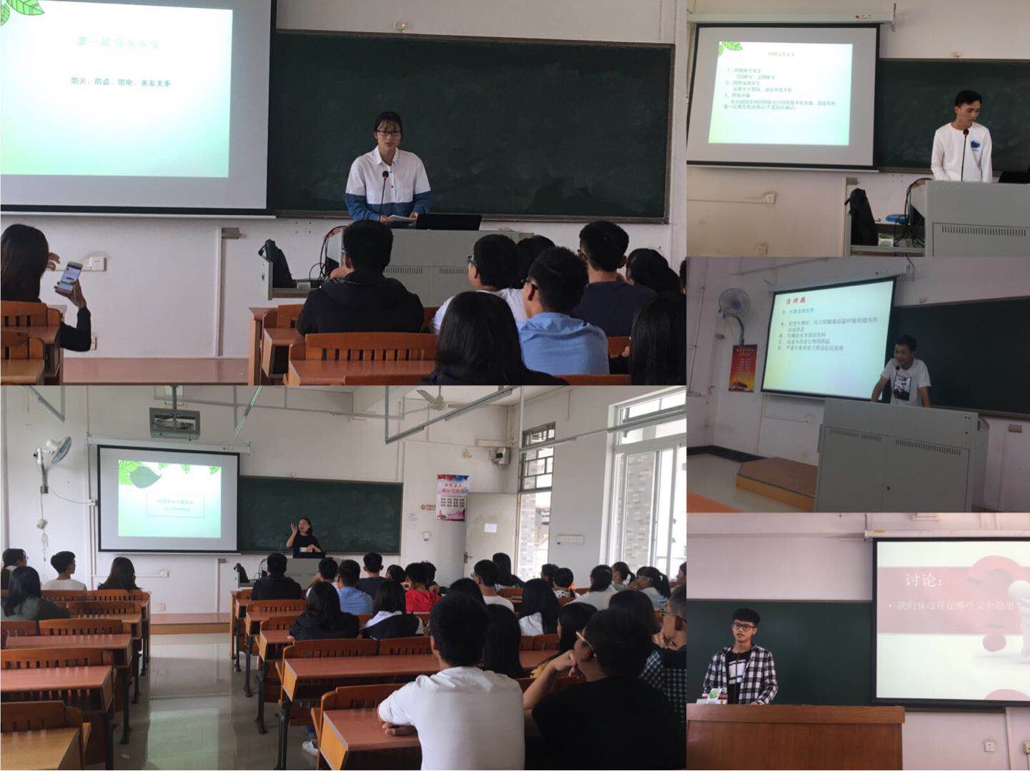 各班级分别围绕校园里常见的安全隐患进行详细讲解,每个班级都详细的介绍了防电、防火、防盗、防抢、防诈骗、防网络诈骗等安全知识,同时也强调了高校常见的几种安全事故,如校园贷、非法传销、外出意外等。同学们都积极的回答一些安全常识问题,也分享了自己身边的安全小案例。