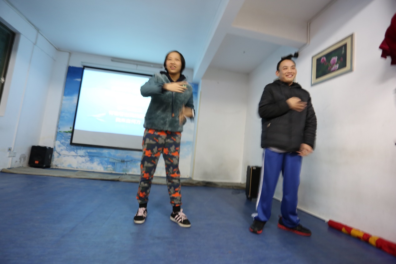 第二站是慧灵机构服务中心,这一站的们一个时刻都难以让我忘记,不管是我们还是他们,都在学习,都在用他们的心在沟通。去慧灵之前,我们信商团学为他们准备了他们喜欢并且会唱的歌唱表演,和人偶表演及游戏互动,到最后的卡纸祝福环节。让我第一印象最深的是他们的热情,让我感受到他们渴望交到更多的朋友,渴望接触社会。当我们走到慧灵机构活动室的门口时,他们有序的坐在座椅上欢笑着向我们伸手握手,这一幕我们永远也不会忘记;我们进入活动室与他们坐在一起,有一位学员我们进行了3个小时活动,他的双手握着我们3个小时,他们都渴望被关爱,都渴望能交到更多的朋友,都渴望像其他人一样快乐的生活。有些学员天生有说话障碍,肢体障碍,智力障碍,甚至精神障碍,但是在人偶游戏活动中,机构的学员们上台歌唱,上台表演手语表现自己,他们积极、自信、向上;是需要我们向他们学习的地方。我们准备了一些夏天他们做活动需要用的帽子作为礼物送给他们,在最后卡片祝福环节,我们团学干事与慧灵学院手把手在卡纸上写上了祝福,加油的话语。每一幕,都是让人值得学习的,我们不会忘记3月10日这一天所有的经历,我们不会忘记这一天的意义。