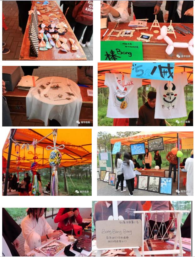 通过初赛的审核,参加本次活动的摊主团队有十二个:他们分别是创协一分队、会飞的五只八戒、最佳组合、你制章吗、寒彩队、街头卖画的熊本、柯宝饰品队、云夕小分队、你真棒、天线宝宝、噼里啪啦、名字很难取。他们在这一天纷纷带着自己的创意作品在市集上进行展示与义卖,各种极具创意的DIY手工艺品、挂件饰品、手绘T恤、书画作品、原创人物漫画、创意平面设计、原创明信片等作品让人眼前一亮。异彩纷呈的创意作品,不仅充分展现了南华学子的个性、想象力、创新能力、动手能力,还吸引了众多同学前来围观与购买。这可以使各位摊主们提前熟悉市场经营全过程,培养他们的创业和市场经济意识,认识市场规律和规则,实践课堂所学知识,真正做到学以致用,活学活用;并且增强他们关注经济社会发展、关注市场的意识,切实地为学生日后走出校园提供经验。