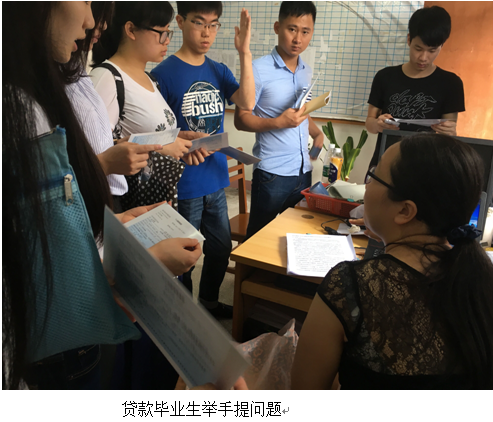11名同学都纷纷提出了自己的一些疑问,包括提前还款,还款利率算法,系统怎么操作等问题,袁老师都耐心的给予解答。11名同学在了解完相关信息后都在毕业确认表上签上自己的名字,并承诺一有能力必提前还款,能按时还本还息,不会让自己成为不诚信的人。