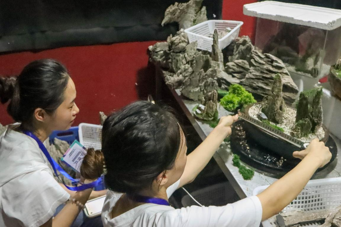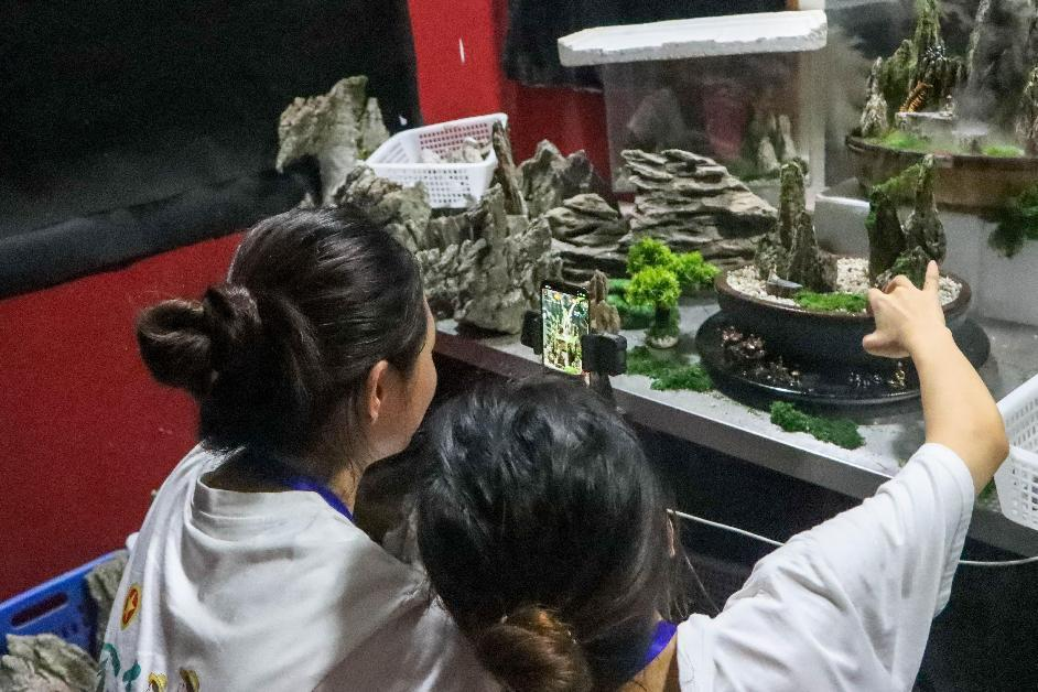 一片英石储备区,就是红心实践服务队直播的阵地,架起三脚架,打开手机直播间,就是直播的开始。主播们化身为波罗特色产品“代言人”,向直播间的观众展示当地独有的英石,详细介绍了英石的生长环境、产品文化、优良品质等方面,吸引了许多用户在直播间驻足观看。