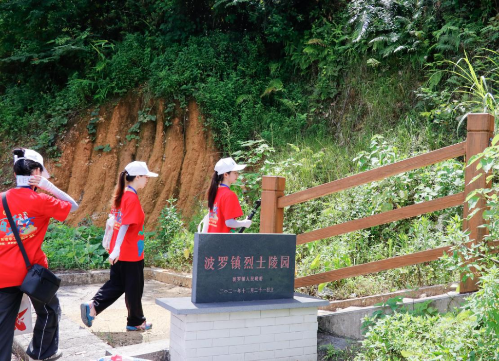 第二站,红心实践服务队来到波罗镇革命烈士陵园开展调研。该红色旅游景点由英德市波罗镇政府于1970年建成,主要是为了纪念为解放战争而牺牲的烈士。据悉,1949年冬天,中国人民解放军第九团和第十二团的全体指挥员,对国民党反动派和一切残余匪帮进行剿灭,在剿灭黄昌、何志仁等土匪的战斗中,十三名同志奋不顾身、英勇杀敌,不幸光荣牺牲。这座庄严肃穆的红色旅游景点,不仅是历史的见证,更是精神的灯塔,照亮了后人前行的道路。