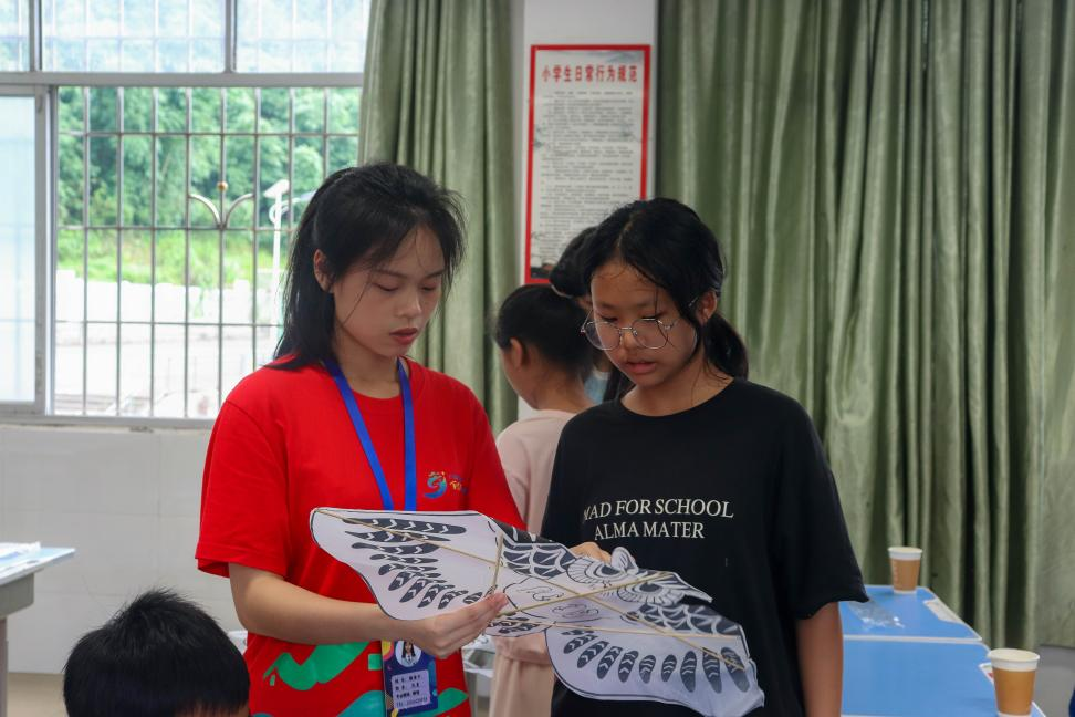 7月12日上午,红心实践服务队精心编织以“放飞梦想,翱翔天际”为主题的支教课程。支教组队员赖秀于通过生动的实践体验授课,通过有奖竞答活动激发同学们的学习热情,并对学生完成的作品进行了展示。“放飞梦想”的授课内容,即是一场风筝制作技艺的传承,更是一次心灵的触动与启迪,在学生亲手制作与放飞风筝的过程中,引导他们深刻反思并描绘自己人生的宏伟蓝图与璀璨梦想。这一系列活动,不仅寓教于乐,更在同学们心中种下了勇于追梦、不懈奋斗的种子,让梦想之翼在蓝天下自由翱翔。