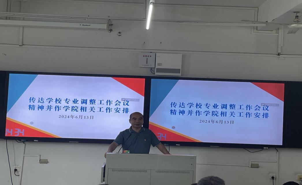 6月13日,信息工程与商务管理学院(以下简称“信商学院”)在清远校区召开专业结构调整布置会。学校党委委员、信商学院院长李新传达学校专业结构调整工作推进会精神并作学院相关工作布置安排,会议由学院党政办主任章小剑主持。