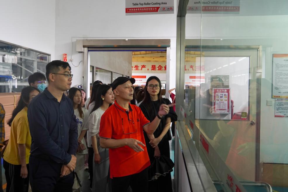 罗文辉对学院一行的到来表示热烈欢迎,他带领我院师生参观双鱼集团生产车间,现场观看乒乓球台、2024年巴黎奥运会官方用球双鱼乒乓球、自动发球机、足球篮球排球三大球等的生产工序,通过观察、感受生产劳动,师生体悟中国制造业的创新化、智能化、绿色化。