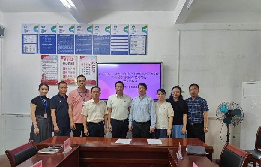 为深入实施“百千万工程”突击队行动,推进教育高质量发展,推进资源共享、优势互补,信息工程与商务管理学院(以下简称“信商学院”)与东城街石板小学结对共建,2024年4月18日下午,双方在东城石板小学开展结对帮扶协议签署仪式。