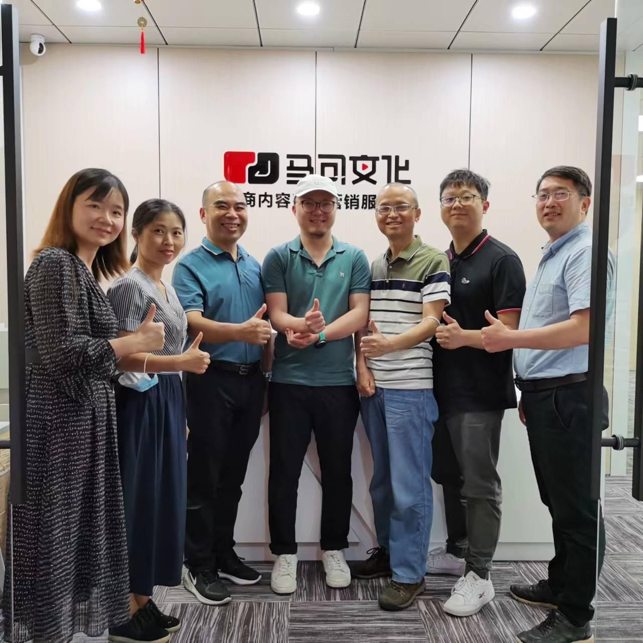 2022 年 6 月 16 日信息工程与商务管理学院李新院长带队,常务副院长肖伟、副书记郑海清、电子商务负责人佘碧 蓉一同前往位于珠江新城高德置地的马可文化传媒有限公 司走访。马可文化负责人江科为我校校友,双方进行了深入而亲切的交流。首先,马可文化总监讲解了马可文化传媒目前的主要业务以及未来的发展方向,随后马可文化孙琳运营总监分享了马可文化传媒正在策划与我校合作的项目,准备在我校建立京东新媒体工作室,开展《人格化短视频带货大赛》,项目目标是持续吸引更多学生参赛,帮助学生打造特色人设,成为短视频带货博主,提升个人价值,尝试更多职业可能性,实现创收;具体执行思路有如何开展选拔、短视 频培训、商业利益以及项目导师支持。双方进行了意见的交流和探讨,目标是能真实落地,帮助学生近距离链接职业岗 位,提升就业质量。最后,双方进行了合影留念。