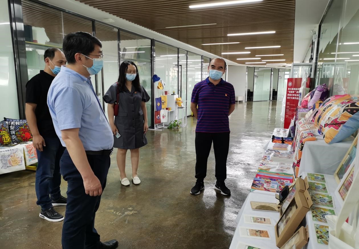 图1 信商学院走访小组参观1988实践基地、参观学生文创作品