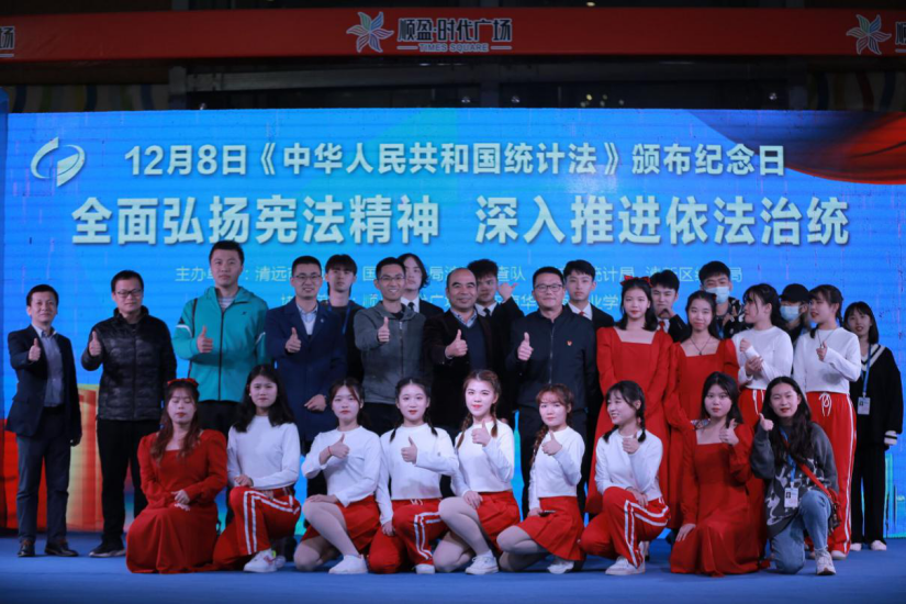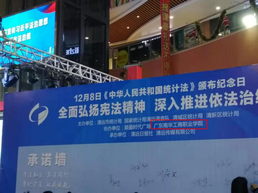 为深化宪法教育,大力弘扬宪法精神,加强对《中华人民共和国统计法》的宣传力度,深入推进依法统计,清远市统计局、国家统计局清远调查队、清城区统计局、清新区统计局于2020年12月8日晚上7点半至9点于清远市顺盈时代广场中庭开展以《宪法》和《统计法》为主要内容的统计法治宣传活动。我校作为协办单位参与了此次法治宣传活动,由信息工程与商务管理学院艺术团协助开展活动。当天晚上,国家统计局清远调查队党组书记、队长陈利红,清远市统计局党组成员、副局长肖新宇,清城区统计局、清新区统计局相关领导,清远市统计系统所有工作人员,学校党委委员、信息工程与商务管理学院院长李新,校依法治校办公室林香伦,信商学院邱州鹏、胡元利、崔宁、李志强老师出席了本次活动。
