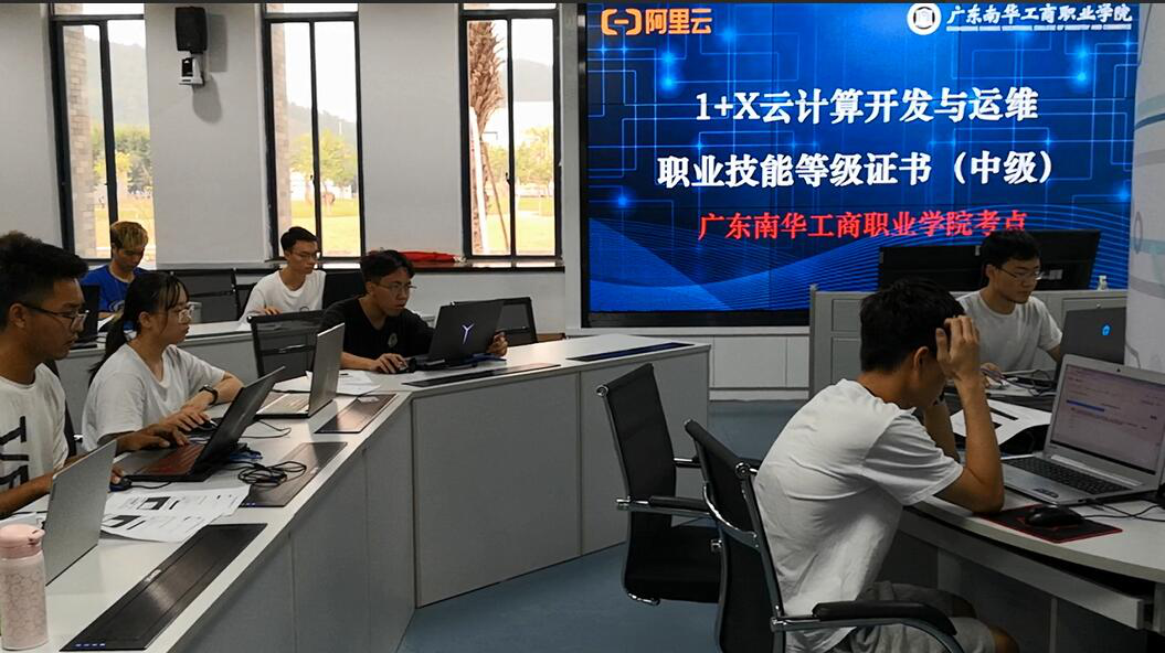 云计算开发与运维职业技能等级认证考试由培训评价机构——阿里巴巴(中国)有限公司组织开考,严格按照认证流程精心组织,克服了时间紧、任务重的困难,在较短时间内完成场地布置、考务组织以及学生的考前培训、训练模拟等各项工作。认证考试内容由理论考核、实操考核2部分组成,全面检验专业学生的理论素养和实操能力。