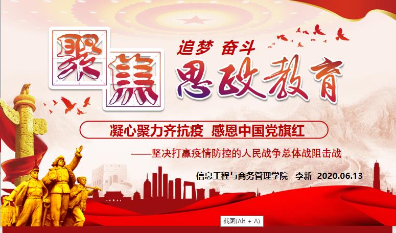 为贯彻落实省教育厅文件精神和学校工作要求,6月13日,信息工程与商务管理学院书记、院长李新以“凝心聚力齐抗疫 感恩中国党旗红——坚决打赢疫情防控的人民战争总体战阻击战”为题,通过线上授课的方式,为我院发展对象和入党积极分子总计180人讲授春季第一堂思政课。