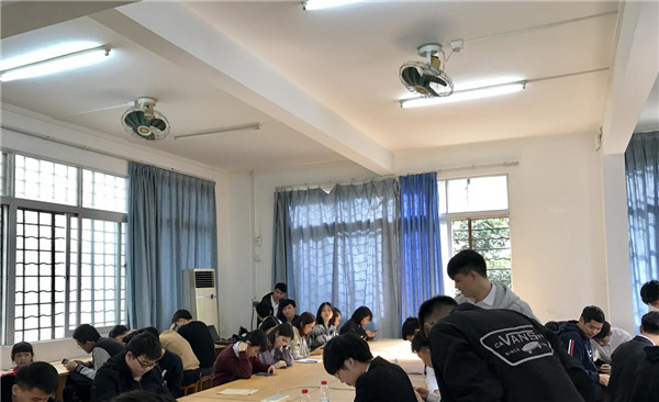同学们在课室认真准备答辩