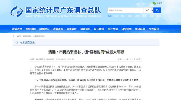 4月23日是第二十四个“世界读书日”,以此为契机,信商学院与国家统计局清远调查队合作,联合开展“清远市民读书情况”项目调研。撰写的调研报告《清远:市民热衷读书,但“没有时间”成最大障碍》再次获得国家统计局广东省调查总队采用,为地方做好市民阅读基础设施建设、政策引导等建言献策。