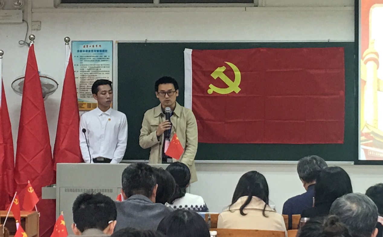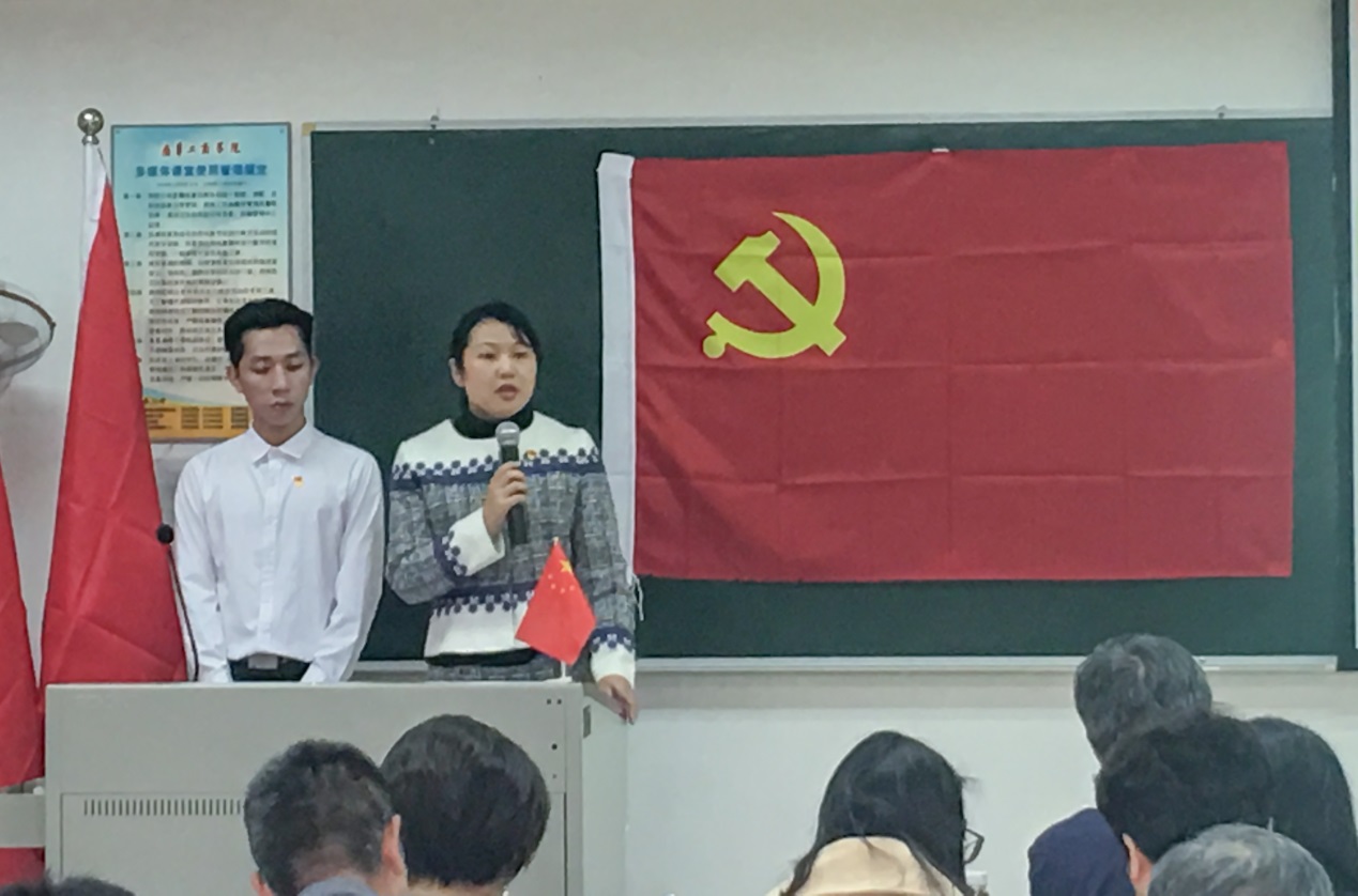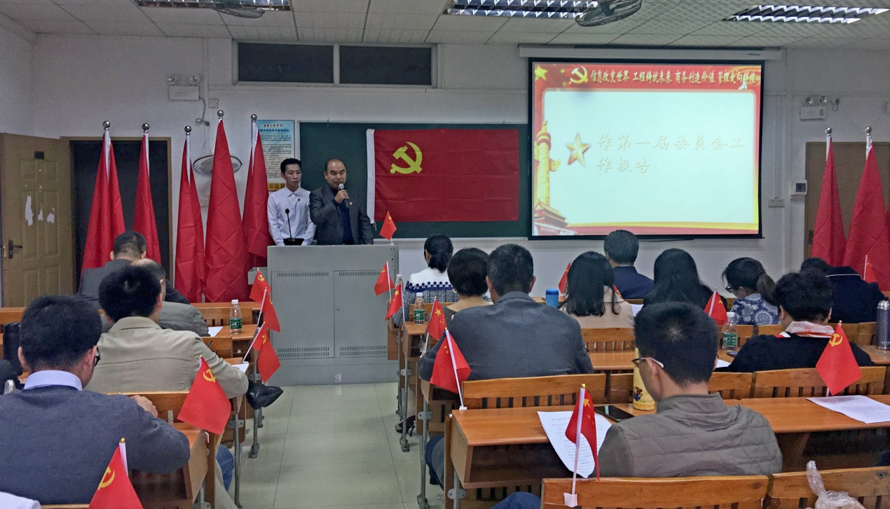 在庄严的国歌奏响过后,信商学院党总支书记李新代表信商学院党总支向党组织及全体党员作《第一届信息工程与商务管理学院党总支委员会工作报告》。他带领大家回顾了信商学院党总支四年来的主要工作,提出了四年工作的过程中出现的问题,也向下一届的党总支委员会提出了建议和希望。