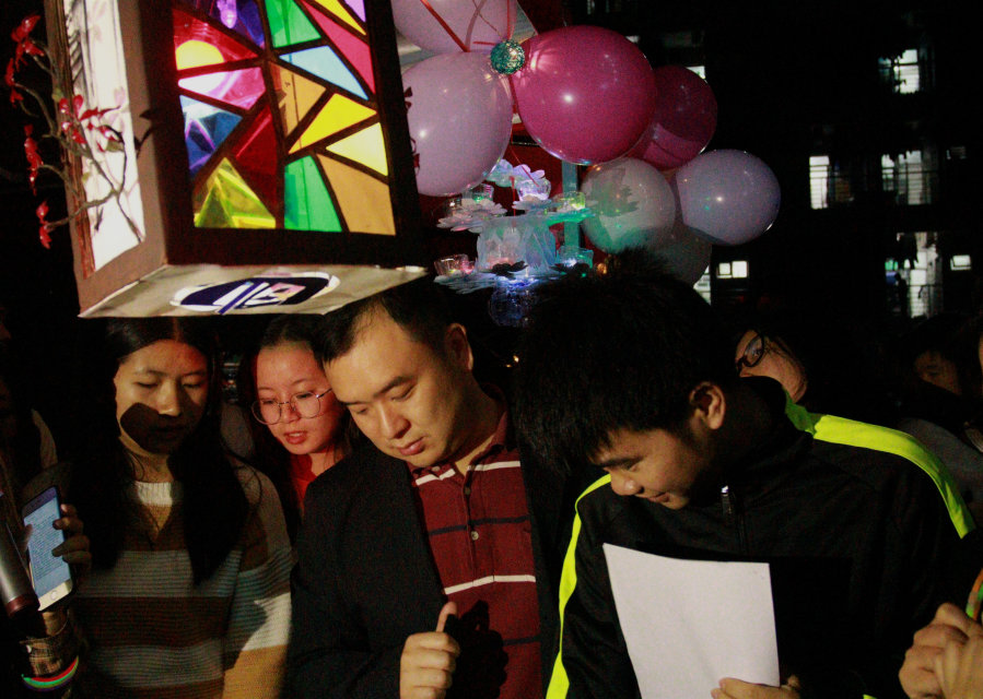 为进一步丰富我校学生课余文化生活,展现同学心中渴望的个性,促使同学们齐心协力,弘扬中华民族传统文化。由广东南华工商职业学院校团委主办,信息工程与商务管理学院承办的第25届南华文化节之“与艺术同行,圆梦青春”花灯设计大赛于2018年11月28日在学生宿舍区2栋楼下隆重举行。出席本次活动的老师和嘉宾有:广东南华工商职业学院校团委方永航副书记、校团委刘晓玲老师、财务金融学院陈冬妮老师、信商学院崔宁老师、龙俏颖老师、赖志聪老师、刘晓允老师、王奕老师以及各二级学院学生代表。