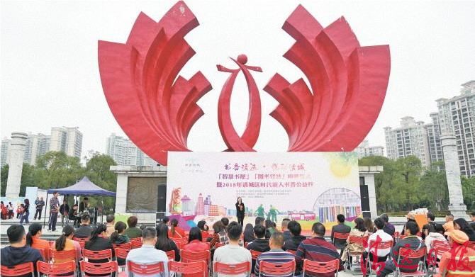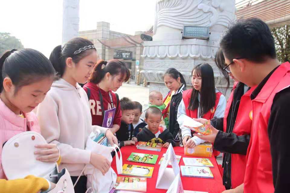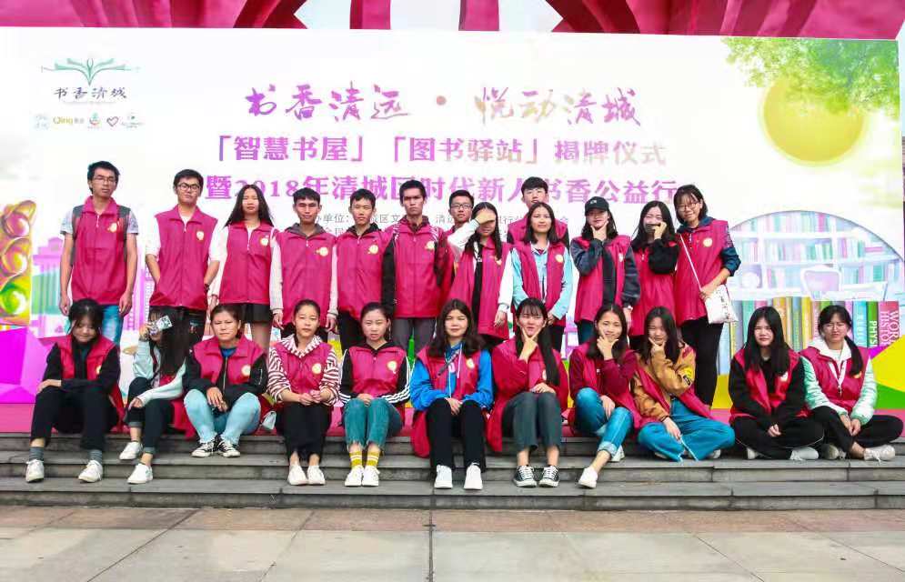 为进一步完善公共文化服务体系,打造“书香清远 • 悦动清城”品牌,营造全民阅读的氛围以及弘扬时代新人的精神,由清远市清城区文明办、清城区农商银行公益基金会主办,清远广播电视台承办的“书香清远 • 悦动清城”智慧书屋图书驿站揭牌仪式暨2018清城区“时代新人.书香公益行”活动于清城区凤城广场顺利进行。信商学院团委学生会青年素质实践中心及志愿者服务中心组织的先锋服务联盟志愿者队于2018年11月24日上午9:30应邀积极参与此次服务实践活动。
