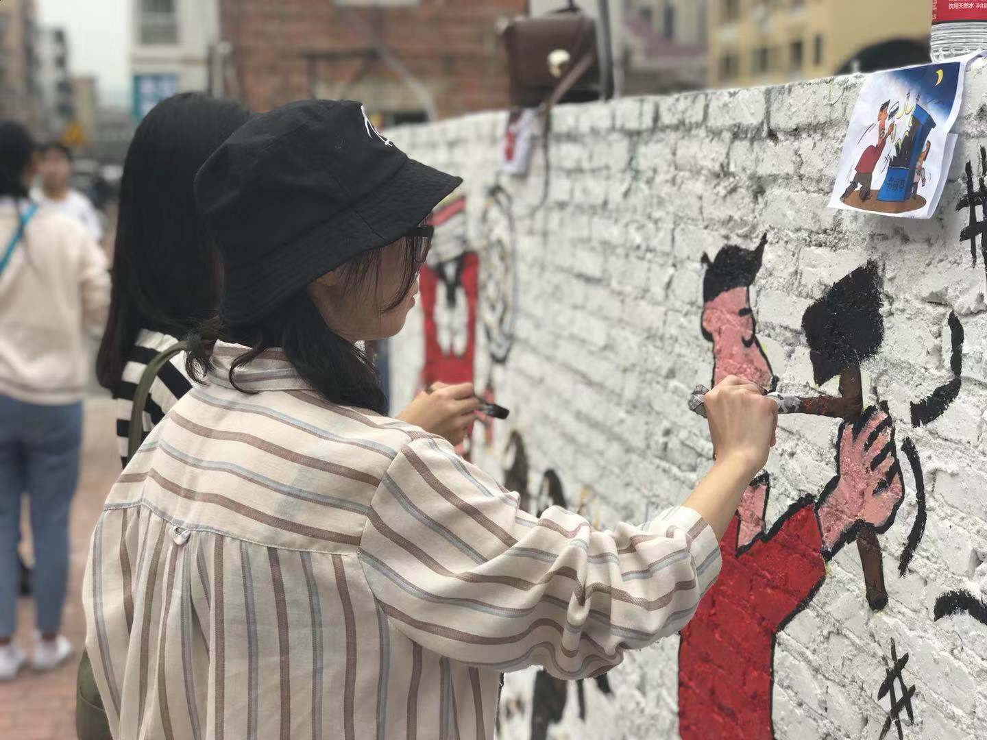 早上9点,在信商学院党总支书记李新、副书记凌红的大力支持和嘱托下,冯圣媖老师带领着数字媒体系19名彩绘志愿者准时赶到塘头十二晚村绘画地点准备绘画。一个上午的时间,村里两面约20米原本光秃的墙面,很快就焕然一新,化身成为乡村安全、文明宣传栏。绘画内容包括消防安全漫画、清远乡村文明十二条漫画等。如,不随便说脏话,不随地乱丢垃圾、不铺张摆宴席等。