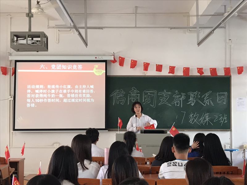 习近平同志在同团中央新一届领导班子成员集体谈话时强调,要切实落实“从严治团”要求。各级团组织要以政治上要严、团的干部队伍建设要严、团员队伍建设要严为抓手,真正把“从严治团”要求落到实处,使共青团组织更加坚强,同青年的联系更加紧密,始终紧跟党走在时代前列、走在青年前列。因此,2018年10月30日下午2点30分,信商学院17级数字媒体应用技术2班团支部根据习总书记重要讲话精神,积极响应学校院团委开展的“活力在基础”主题团日活动,在教学楼325开展以“从严治团”为主题的团日活动。