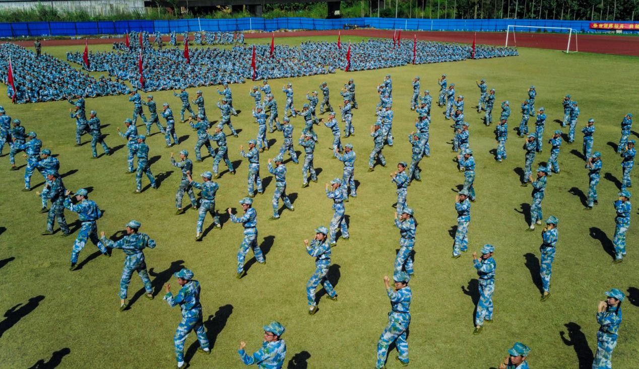 分列式出场完毕之后,信商学院一营200多人组成的军体拳表演方队,更是为大家献上了一场气势磅礴的演出:一声吼,一步拳,一个脚步一惊雷 ,一招一式吸引眼球;敬南拳,骑龙步,潇洒挥舞引豪气,扎马步,上弓拳 ,步步为赢不服输。军训里,傲慢的勇气、放纵的姿态,证明过错软弱从不属于他们,精诚团结是他们拳风的力量。