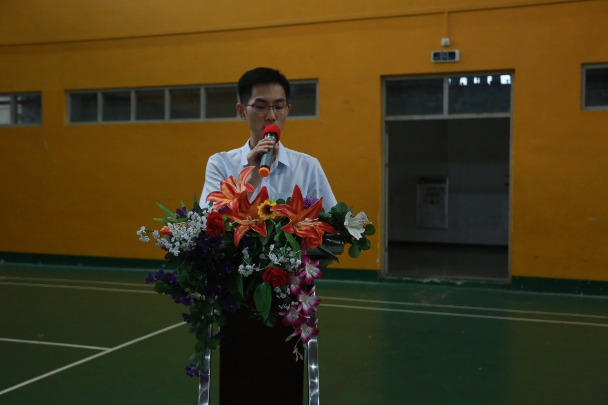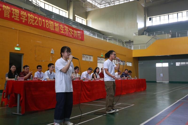 大会伊始,全体起立奏唱国歌。接着,副院长杨家成老师介绍信息工程与商务管理学院基本情况和所取得的骄人成绩。其次,2017级学生代表邱洁标同学上台发言,在发言中表达了对新生们的热烈欢迎,同时希望师弟师妹们在校能够不忘学习的初心,不断提升综合素质,坚定自己的目标,以及在学校快乐的成长。