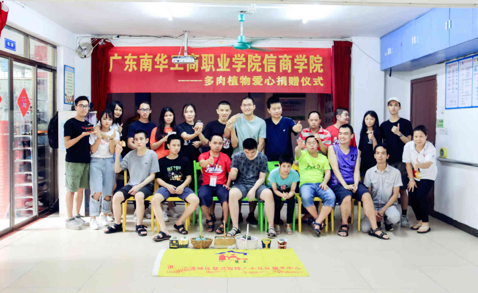 7月14日晚,清远慧灵13周年“感恩成长 砥砺前行”慈善晚会顺利举办。信商学院数字媒体系专业课程实验作品助力慈善晚会,将300余盆多肉盆栽捐赠给清远市清城区慧灵智障人士社区服务中心,该中心将捐赠的作品用于慈善晚会现场爱心义卖,善款将用于支持慧灵智障人士的日常开支服务,以及为他们开展各项服务项目,创造更多的学习成长机会,解决经济困境。