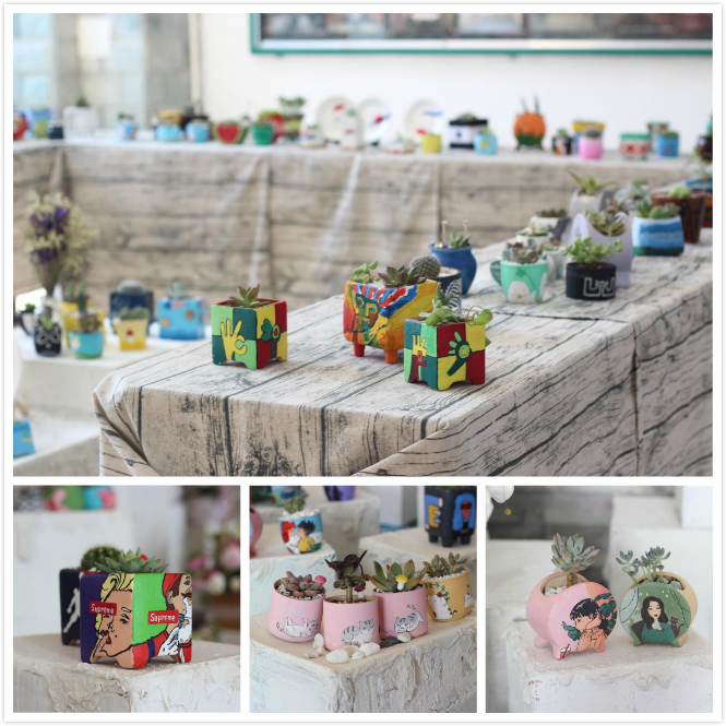 此次展览以“卖·萌”为主题,“卖”为慈善义卖,“萌”为萌萌哒的多肉植物。展览的主体为多肉植物盆栽,每一盆盆栽的图案都是经过学生精心设计,手绘创作而成。 这是一个将专业基础课教学与动手实践操作能力密切结合的教改过程,无形中锻炼了学生的动手能力、思维能力、探索精神及团队协作能力,为以后就业、创业奠定了基础。