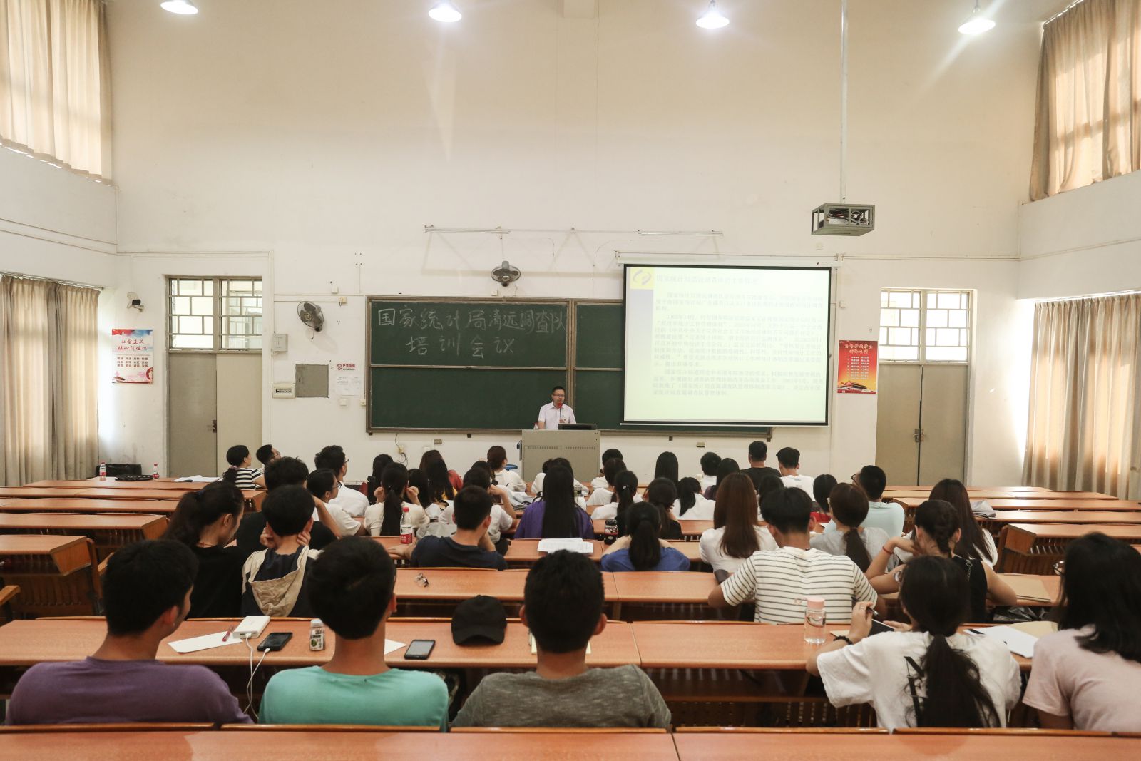 按照学校与国家统计局清远调查队(以下简称清远调查队)联合开展统计调查服务工作的协议内容,5月23日下午,清远国家调查队派出业务骨干为蓝天调研工作室近50名优秀学生代表开展统计调查业务培训,这标志着学校与清远调查队的校政合作正式落地。