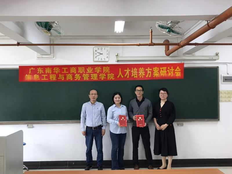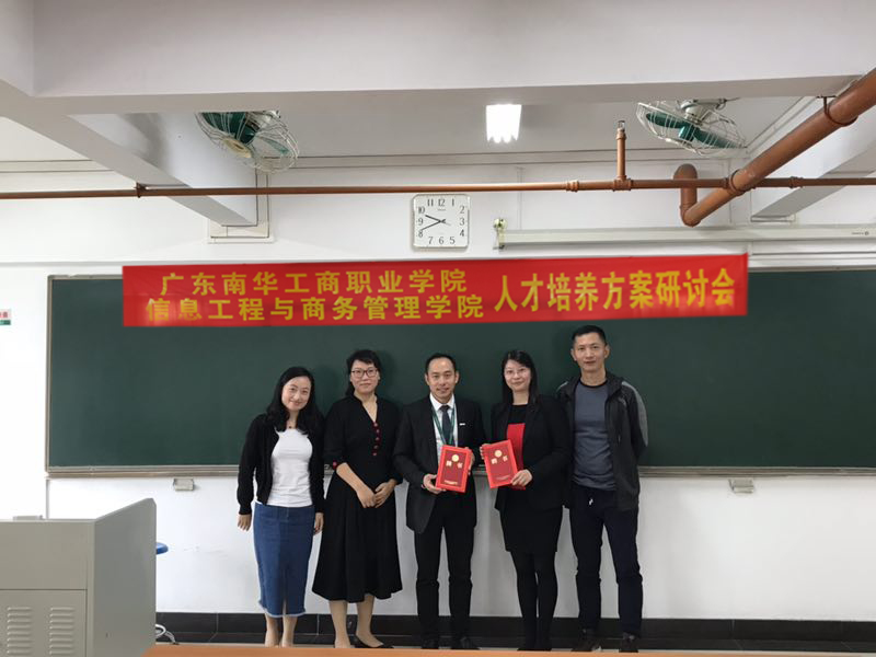 为了更好地修订2018级人才培养方案,使课程设置更契合毕业生用人单位的需求,2018年4月19日上午,广东南华工商职业学院信息工程与商务管理学院在本校天河校区召开商务营销系人才培养方案研讨会。信息工程与商务管理学院常务副院长肖伟、刘杰副院长出席会议。会议由商务营销系的系主任张红艳老师主持,常务副院长肖伟作主题发言,刘杰副院长为出席企业专家颁发聘书。其他参会人员包括电子商务专业的贾晓松老师,市场营销专业的负责人涂志军老师和吴丽蓉老师。参会人员认真审阅了本年度制定的商务营销系专业人才培养方案,并对方案初稿的进行了热烈的讨论。张红艳、贾晓松、涂志军、吴丽蓉等校内老师,唯品会行政人事部蔡富君经理、佛山市承林家具有限公司战略人事部冯夷容经理、链家广州大区广州分公司招聘主管黄令涛、合富置业人事部梁敏珊经理等企业专家围绕完善人才培养方案的会议主题,结合本专业的行业需求进行发言。