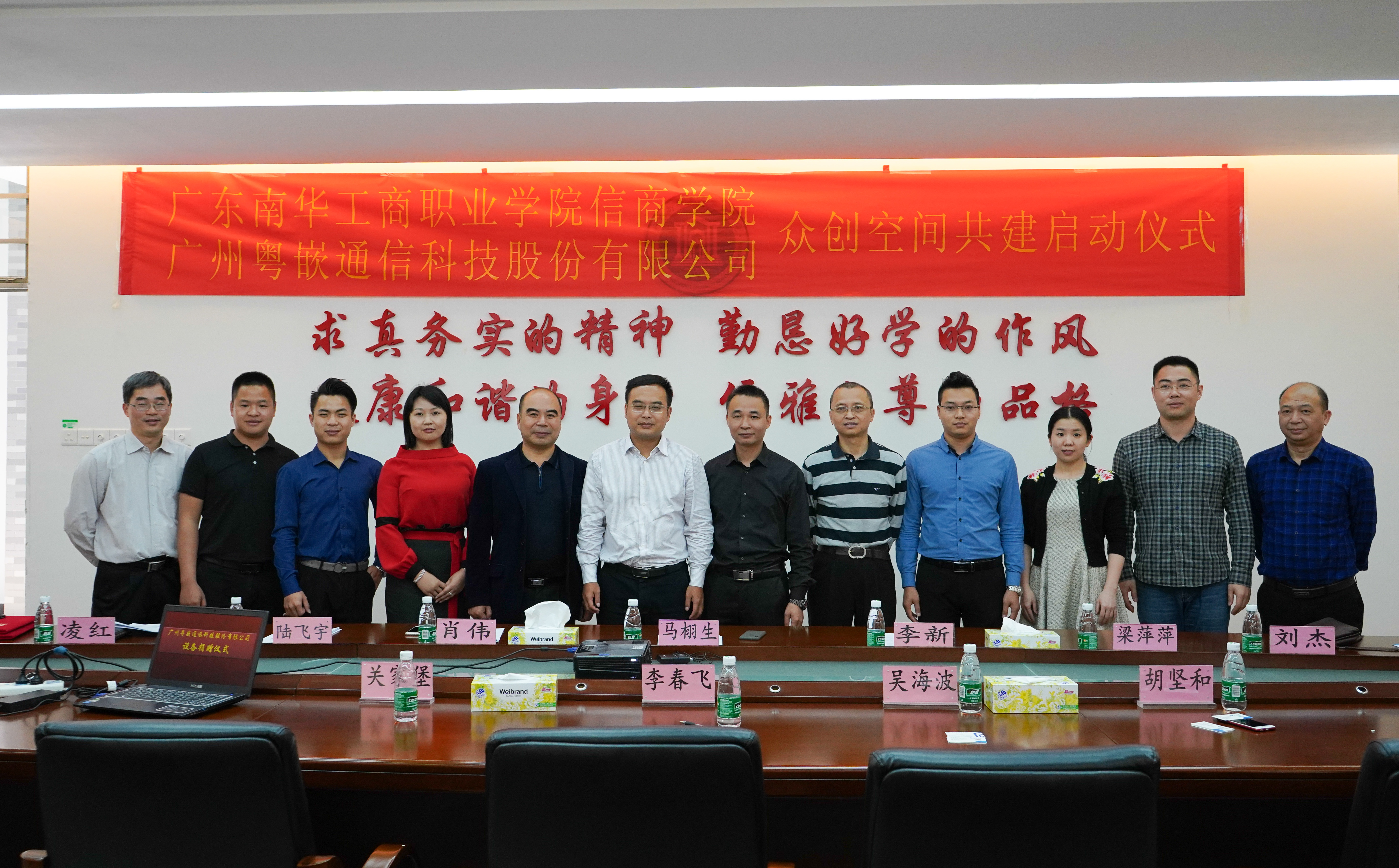 为进一步提高学生的专业技能水平,强化我院技能型人才培养深度,信商学院于3月27日下午16:00在清远校区实验楼201会议室隆重举行了“广东南华工商职业学院信商学院与广州粤嵌通信科技股份有限公司众创空间启动仪式”,出席本次启动仪式的领导和嘉宾有:广州粤嵌通信科技股份有限公司李春飞副总经理、粤嵌众创空间运营部负责人吴海波经理、粤嵌众创大区经理关家堡经理、粤嵌校企合作负责人胡坚和总监、广东南华工商职业学院党委书记、校长马栩生教授,学校党委组织宣传部梁萍萍副主任,清远校区综合办陆飞宇副主任,信商学院李新院长、信商学院肖伟常务副院长、信商学院刘杰副院长、信商学院党总支凌红副书记、信商学院信息技术系杨家成主任。