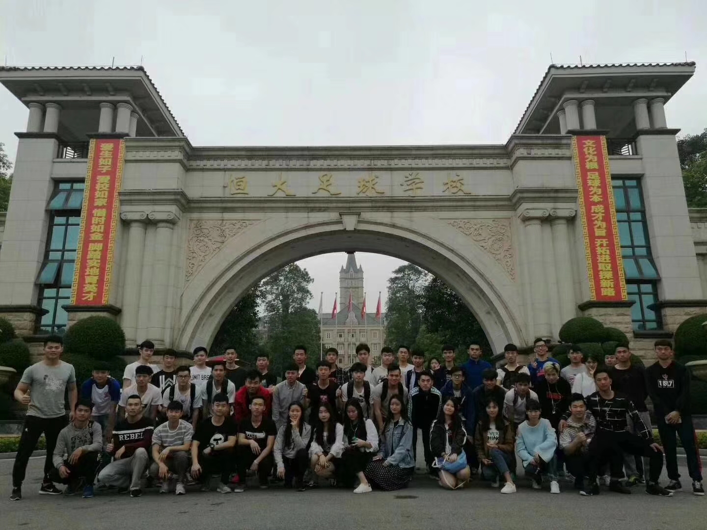 刚踏入校门就感受到浓浓的足球特色文化气息,令该专业学生兴奋不已。全体学生参观了恒大足球学校的各种设施:五十多个中小型足球场、学生饭堂、教学楼、宿舍楼等大规模欧美英伦风格建筑。据学校杨老师讲解,恒大足球学校是一所以“振兴中国足球,培养足球明星”为办学目的,实行文化教育与足球专业培养的全封闭、全日制寄宿学校。校训为“志存高远,雄冠天下”。