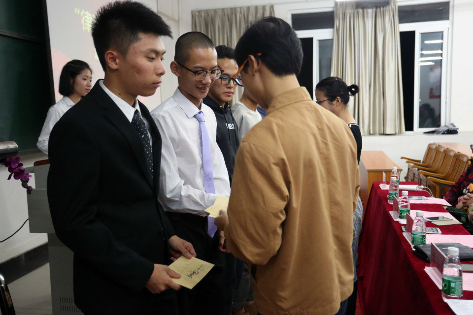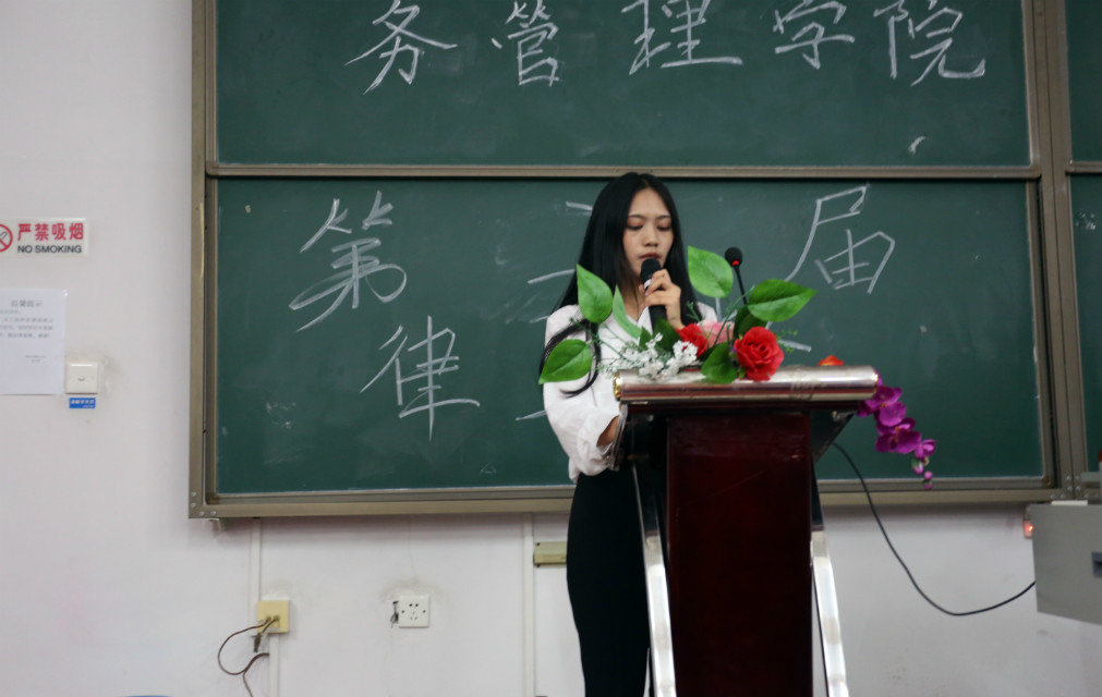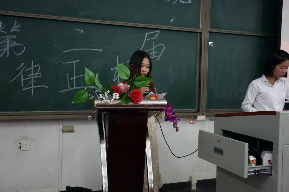 此次大会由张琦璘、陈栩浩同学主持,大会伊始,在主持人热情洋溢的致词下,令人期待已久的“律正杯”颁奖仪式拉开了帷幕。并由纪检部部长何雨萱同学上台发言,她对上一年度的纪检工作进行了总结,要完善各项考勤制度,从中发现不足,并逐一改善,使信商学院各班级的班风班纪得以提升,继续保持努力、认真的工作态度,使各项工作更上一个崭新的台阶。并向大会介绍评奖规则。对“律正杯”及评比标准进行介绍:由副班的月底考勤统计汇报情况,返校率,最后由纪检部对其工作的反映分,任课、带班老师评分综合评价中挑选出五位“班级卫士”及纪检部干事根据班级日常点名考勤统计出扣分最少的前五个班级,综合评为“律正班级”,获得律正杯的班级每班将获得300元奖金、获得班级卫士200元奖金。介绍完“律正杯”的评比标准后,与会来宾一起观看了老师采访视频。
