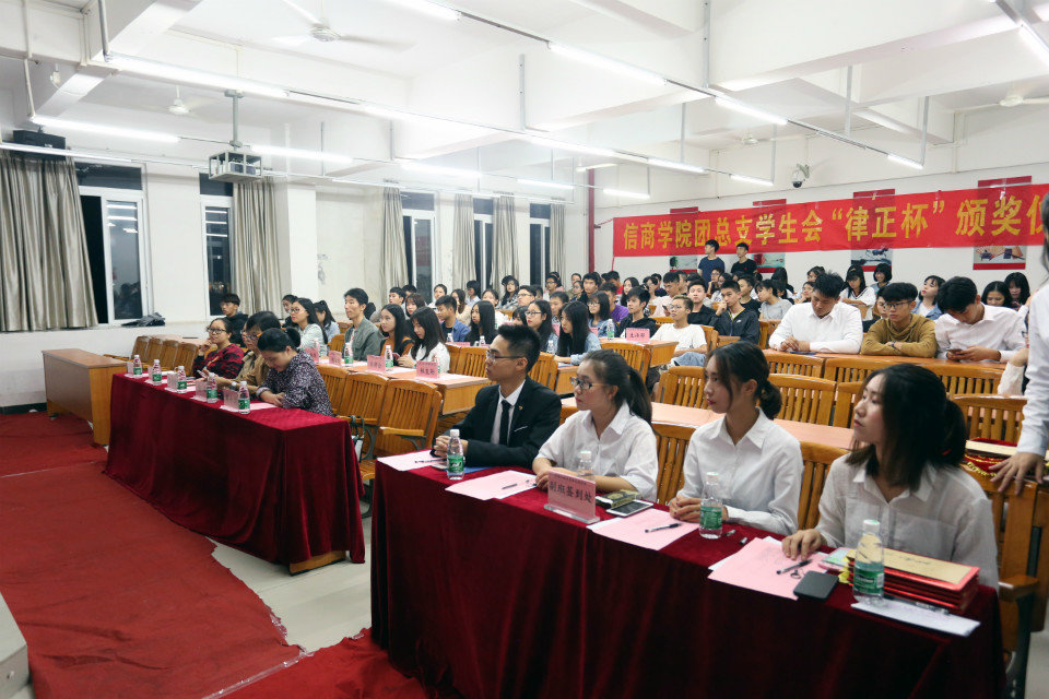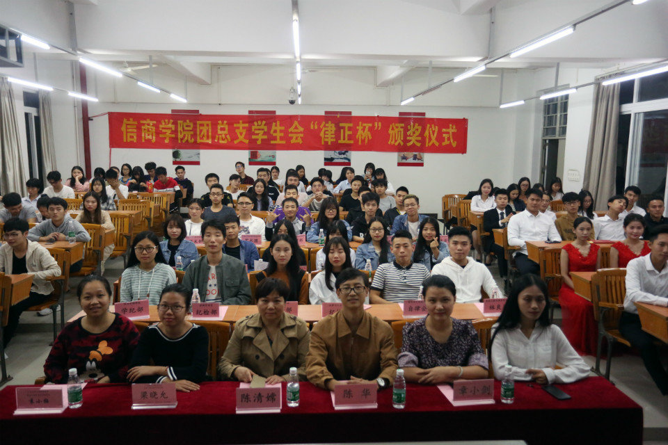 为了提高我院学生的纪律意识,进一步促进信息工程与商务管理学院学风建设,营造良好的育人环境,有效开展博雅教育,信商团学纪检部于2017年11月17日19:00整举行了第二届以“弘扬纪检正气”为主题的“律正杯”颁奖仪式,出席本次活动的嘉宾有信商学院学生会指导老师陈华老师、信商学院学生党支部书记章小剑老师、信商学院陈清嫦老师、袁晓梅老师、梁晓允老师、及信商学院各部门代表。