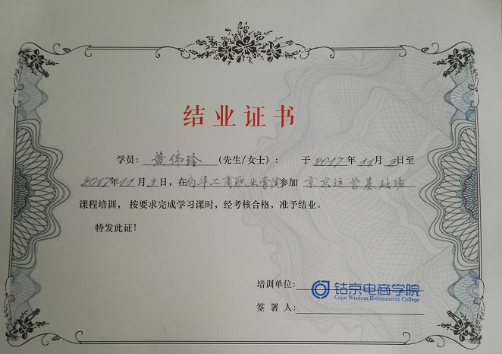培训结束后,钴京公司对培训合格的同学颁发了证书。
