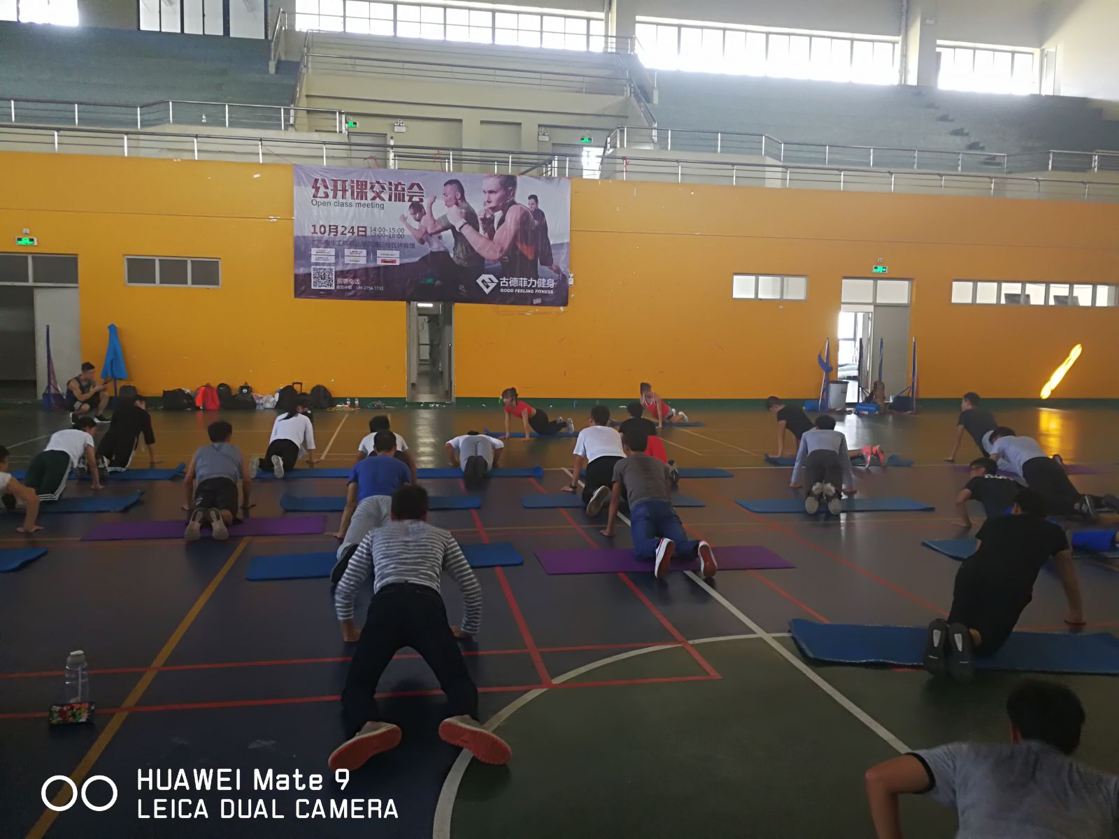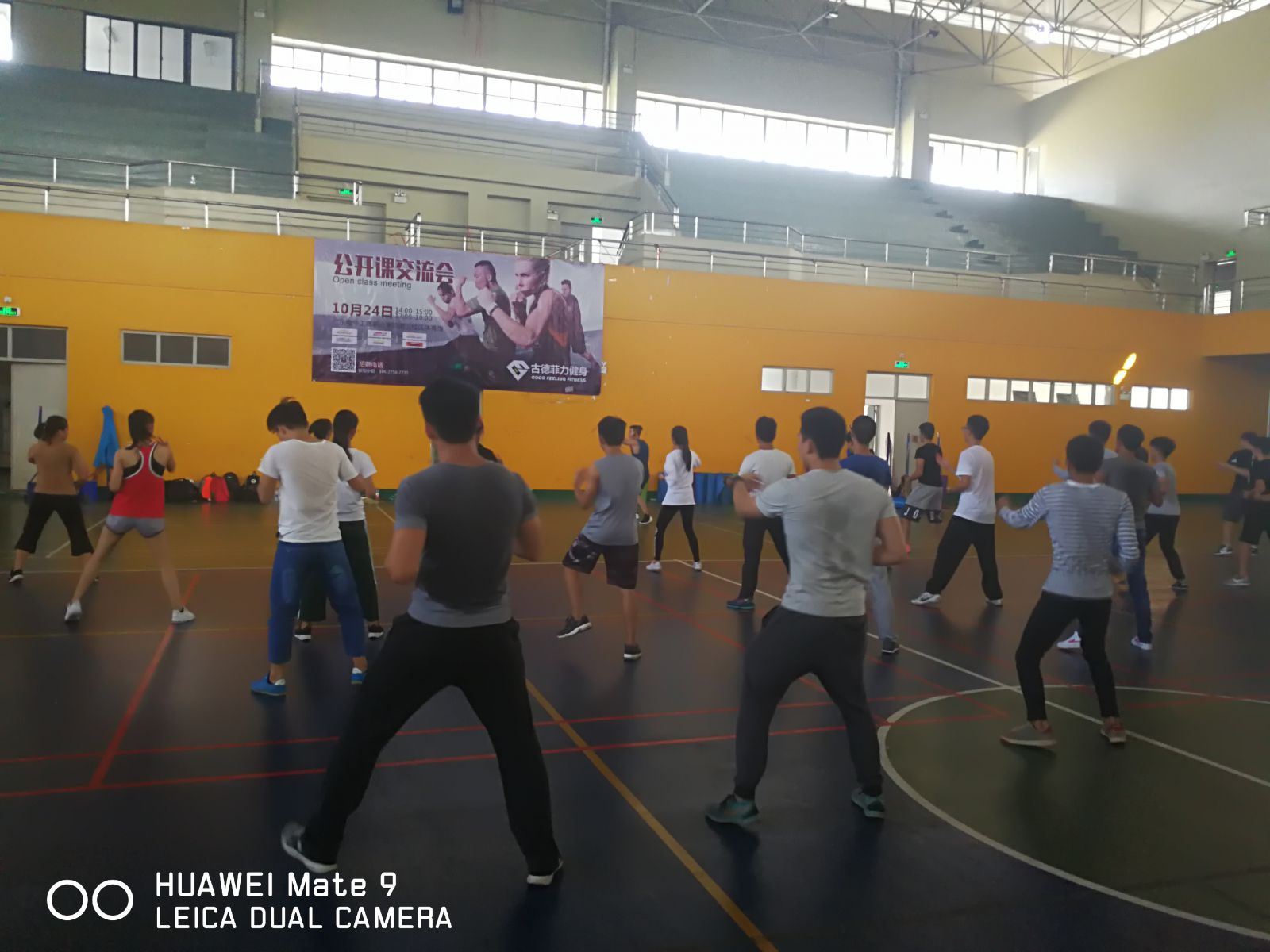 10月24日,信息工程与商务管理学院体育服务与管理专业2017届全院优秀毕业生罗桂颖同学、布舒敏同学以及古德菲力团操总监张良及人事欧阳等一行六人来到我校清远校区,首先在教学楼318与16级、17级体育班的师弟师妹们进行学习经验分享与团操项目内容交流。随后在体育馆进行团操实操教学,与该专业学生热情互动,激情四射技能展示,效果甚佳,让更多的学生了解团操。团操,是一种融于体操、音乐、舞蹈于一体的追求人体健康与美的运动项目。