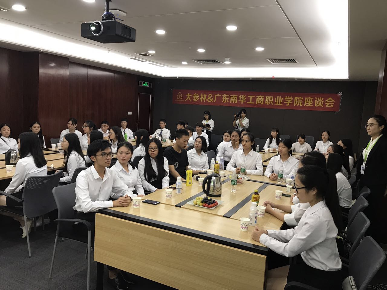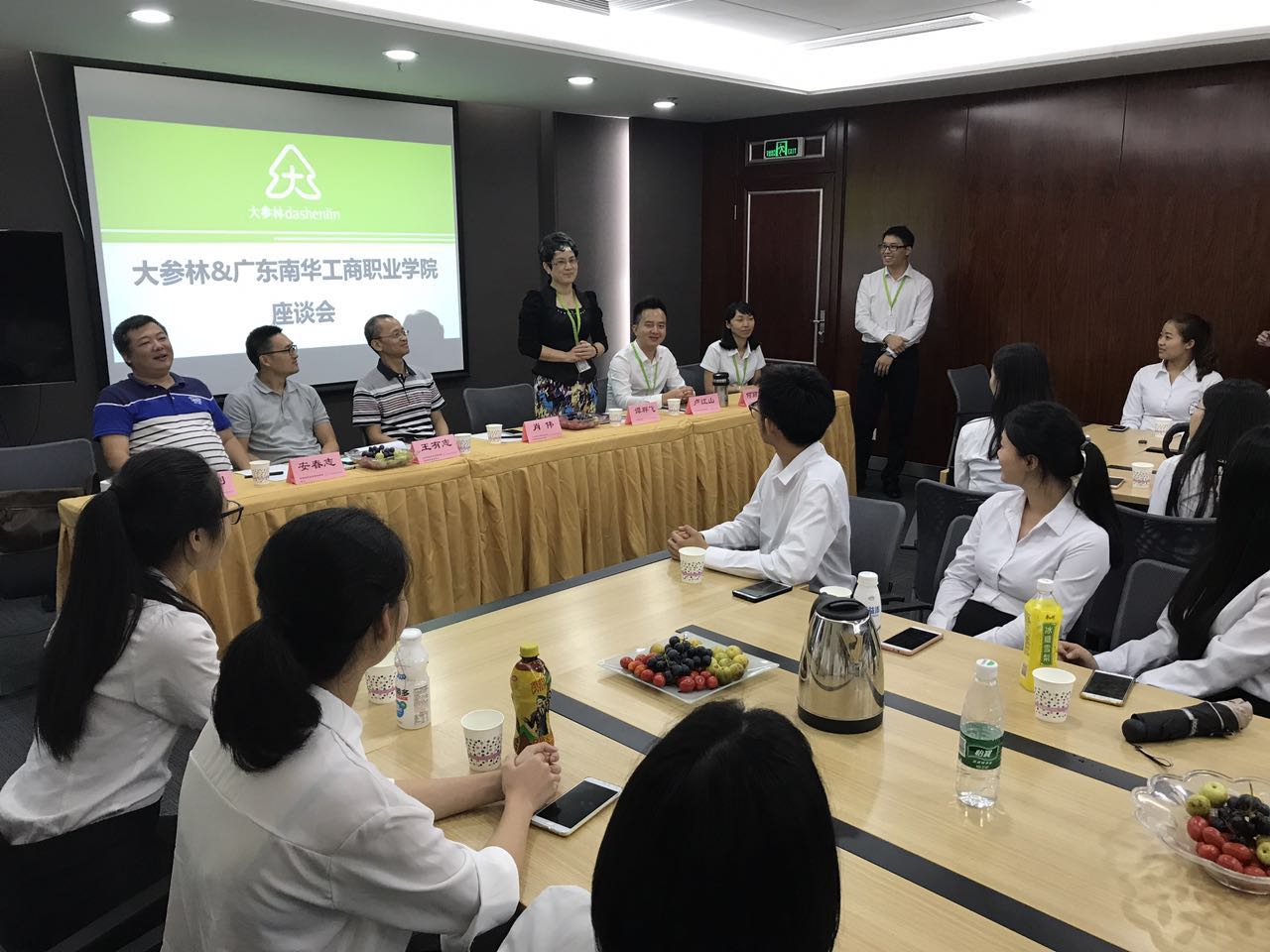 2017年9月21日,广东南华工商职业学院与大参林医药集团共建的“大参林订单班”开启学期第一课——参观大参林集团总部。由信商学院肖伟常务副院长、经营管理群负责人安春志、药品专业负责人王有志以及专业老师胡元利带队学生由清远出发,开往广州大参林集团总部。大参林集团副总裁谭群飞、粤中大区人力资源部卢江山总监、粤中大区清远营运区人力资源部何丽芳主任、粤中大区番禺营运区人力资源部孙鑫主任等人接待我校一行人。