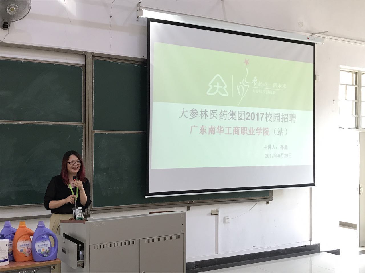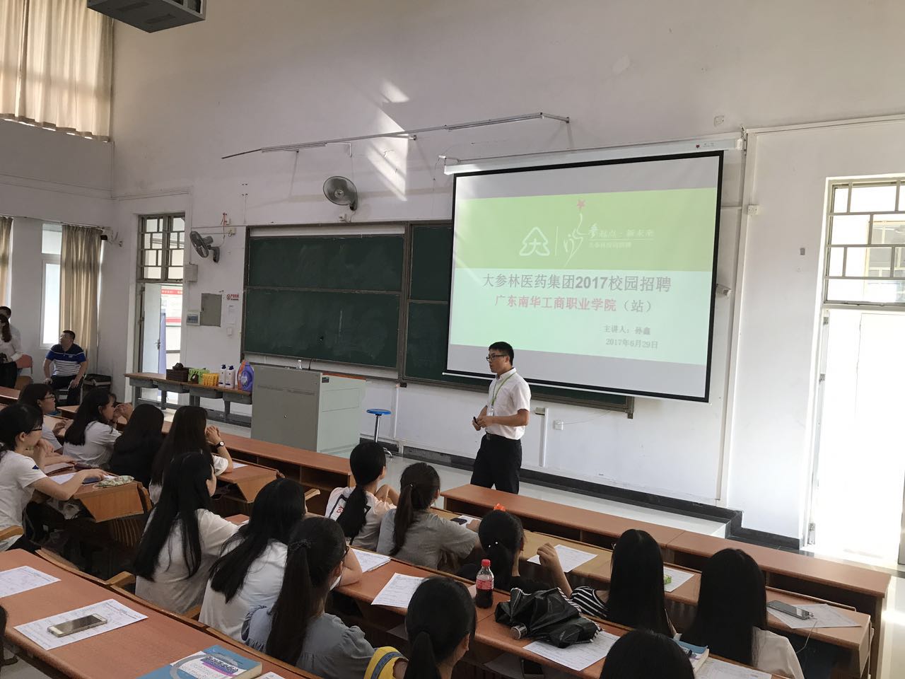 2017年6月29日下午,在“模拟药店”揭牌暨签约仪式结束后,大参林医药集团在我校清远校区教学楼101,面向2016级药品经营与管理专业学生进行了一场宣讲会,并在会后进行了“订单班”面试。