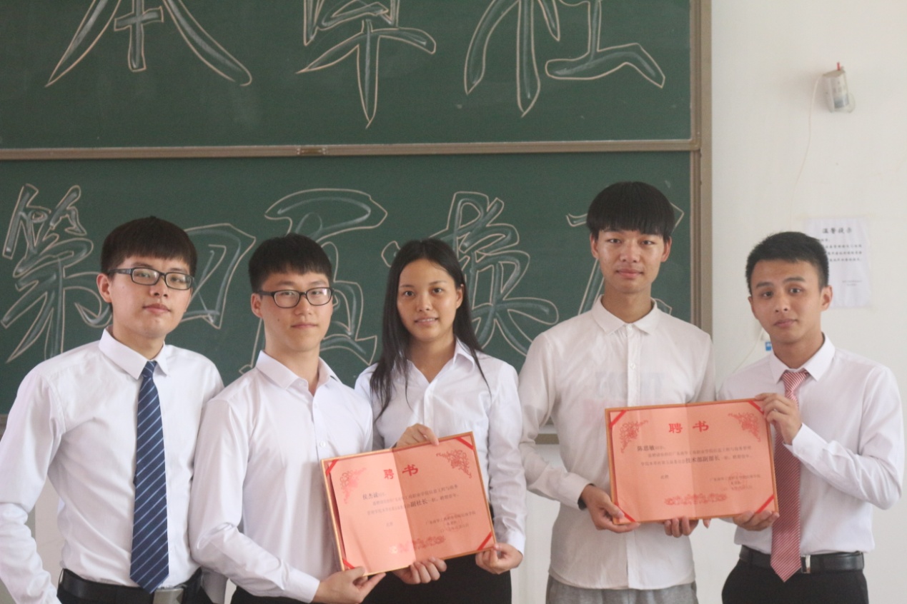 社团助理刘嘉鑫、副社长莫江霞、副社长吴志坤为两位新任副社长后颁发聘书