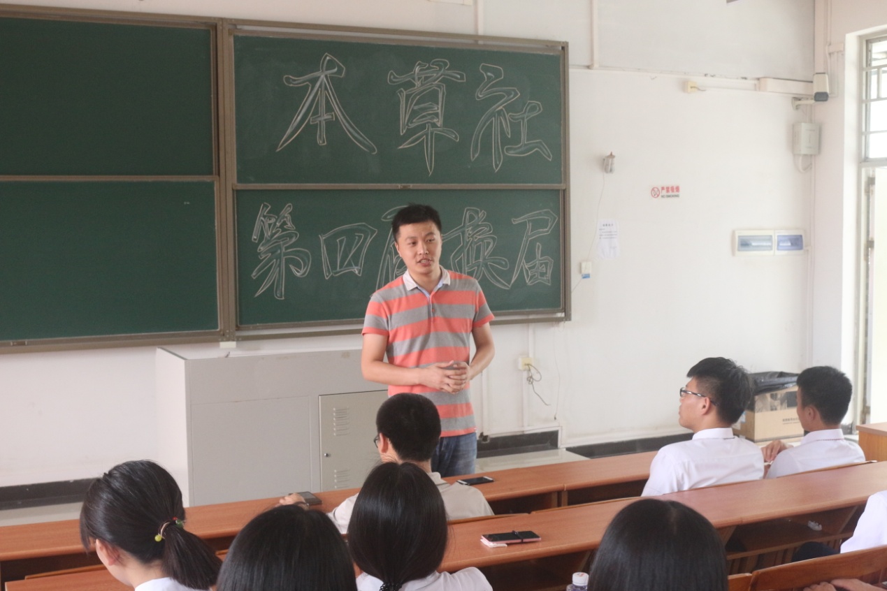 社团各部门的新老干部、干事早已在换届大会开始前赶到大会现场布置场地,做好活动的前期准备。大会上,本草社社长陈钰玮作出过去一年本草社工作的总结并发表了对新任干部的寄望,王有志老师与胡元利老师肯定了过去一年本草社委员会的工作,并对新上任的委员会给予很高的期望,还参与了为新一任本草社社长颁发聘书。两位老师表示愿意争取更多资源,与新一届委员会为本草社的发展共同努力。此外,王有志老师与大家探讨了新一届委员会的工作设想,围绕各部门的交流合作对未来的工作进行了深入的剖析,强调委员会成员要有奉献精神和责任意识,始终保持良好的精神风貌,积极完成社团的工作。