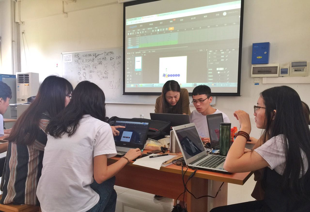 此次课题的合作方是国内著名CG技术平台火星时代,是信商学院数媒专业群在珠三角地区走访多家公司后选定的一家深度合作企业。在《广告策划与创意》课程中,责任导师孙冰洁先带领学生学习专业知识点和技能方法,再于课程中后段将企业导师引入课堂,实题实做,以真实刺激、积极互动的把控风格与多重回馈机制对学生进行激发和引导。学生利用多媒体教室的网络环境,在无需编码的前提下,通过云端使用h5设计工具对多媒体元素进行拖拉、排放、设置等可视化操作,实现在线编辑功能。最终35位学生一共产出35个可在手机端运行的广告营销方案作品。
