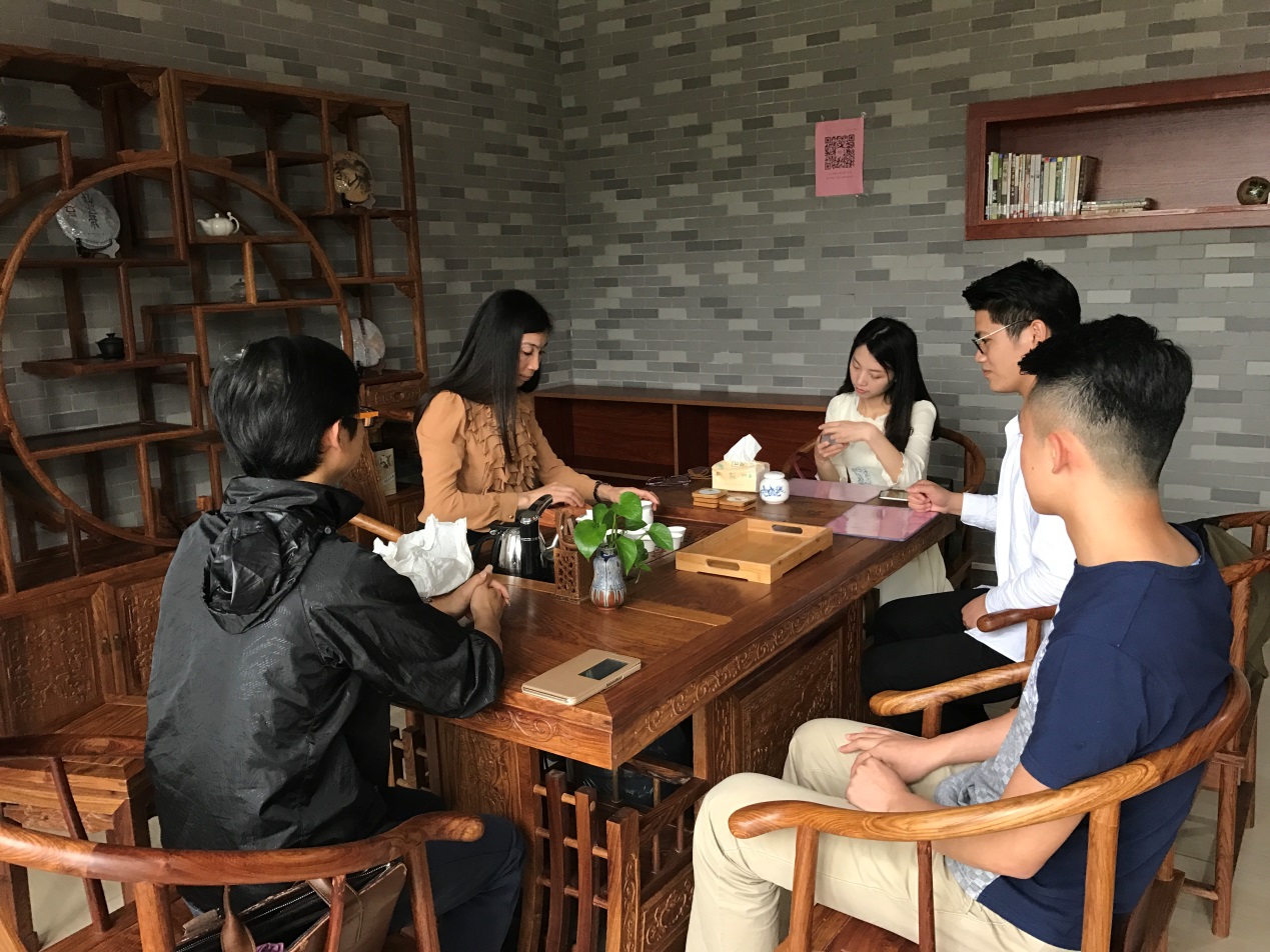 孙红舟老师一行到访我院主要就茶室建设、运作模式、学生团队搭建、组织架构、创新创业等方面进行交流。陈华老师对孙老师介绍了我院大益爱心茶室去年6月至今的筹备、建设情况,同时对茶室的文化传播、功能创新做了探讨。李宇清老师为对方介绍了学生自主运营、管理的经验,在组织架构搭建方面交流了心得体会。整个交流会持续一个小时,简单、热烈,双方希望在茶室建设、文化交流方面有更多的探索。