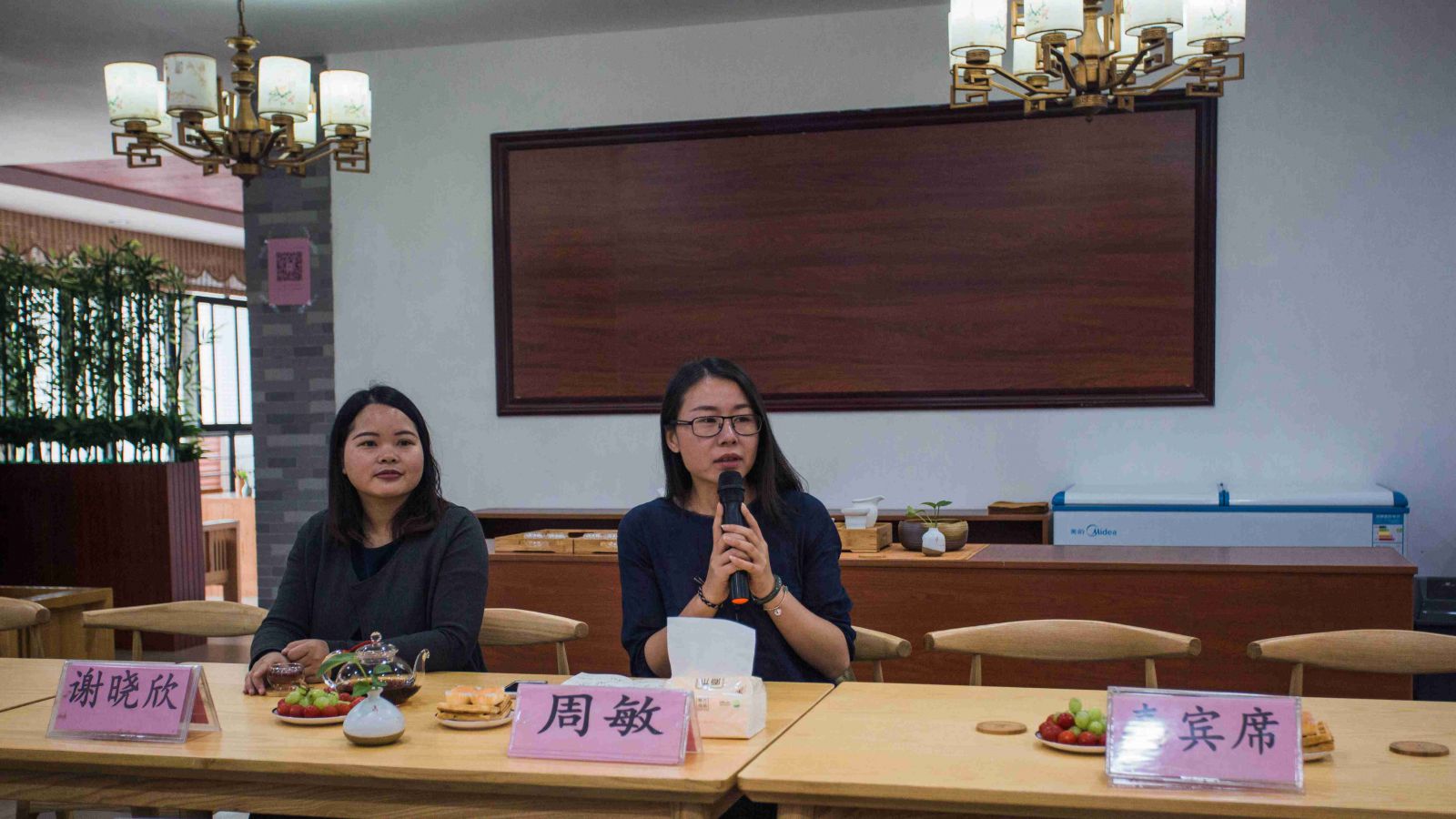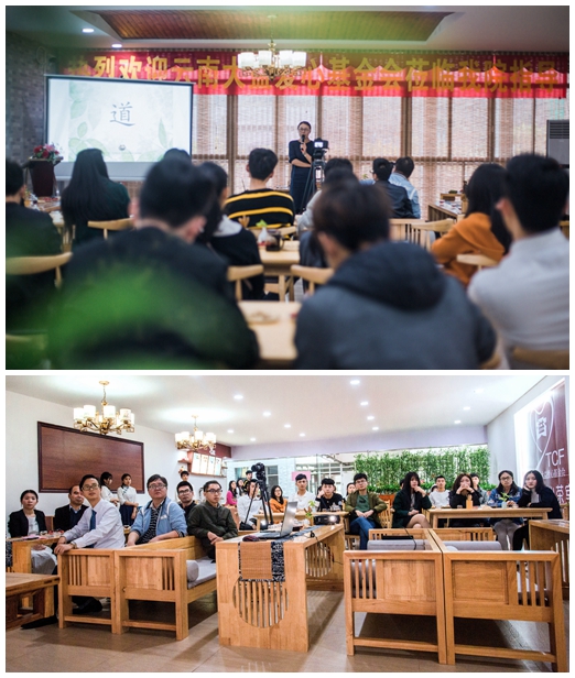 基金会周敏女士对我院爱心茶室的工作作了指导,并提了建设性意见。她首先表示茶室成功落广东南华工商职业学院,感谢校领导、院系领导及相关部门的支持与帮助,感谢茶室指导老师的付出,感谢一群默默奉献的小伙伴们以及渠道商的帮助,同时对茶室运营团队给予高度的评价。希望茶室能让每一位到茶室的客人在享受茶艺的同时,感受到“惜茶爱人”的茶道精神,并将公益精神和茶文化一起传递给更多的人。她表示基金会将会与学校、渠道商一同来做好茶文化推广,今后会把更多的公益巡回讲座带到学校。