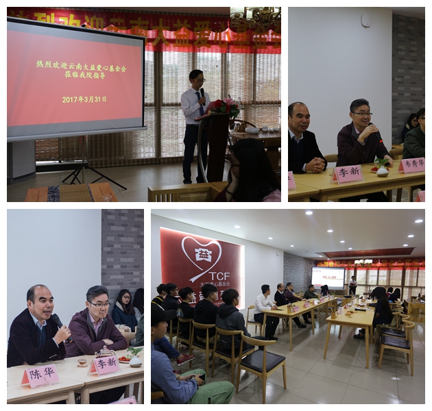 在座谈中,院长助理、清远校区综合办韦秀华主任代表学院对基金会一行的到来表示欢迎,茶室成功落地我院,进一步丰富了校园文化,有利于弘扬中华茶文化,促进校园文化建设。信商学院李新院长向基金会介绍我院茶室建设情况,感谢基金会对茶室的落地提供资金支持与帮助,我院也积极推进茶室建设,配套资金进行建设,信商学院将会把茶室与专业相结合发展,为信商学院各专业学生提供实训实践平台。茶室运营团队学生负责人黄佳坤同学作了2016年度运营情况汇报及2017年度工作计划,茶室将朝着“文化茶室、休闲茶室、公益茶室”方向努力,为广大老师、同学们提供一个品茗休闲的场所。